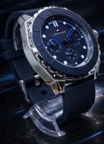 Material: Caixa de 48 mm em aço inoxidável ionizado e pulseira de azul.
