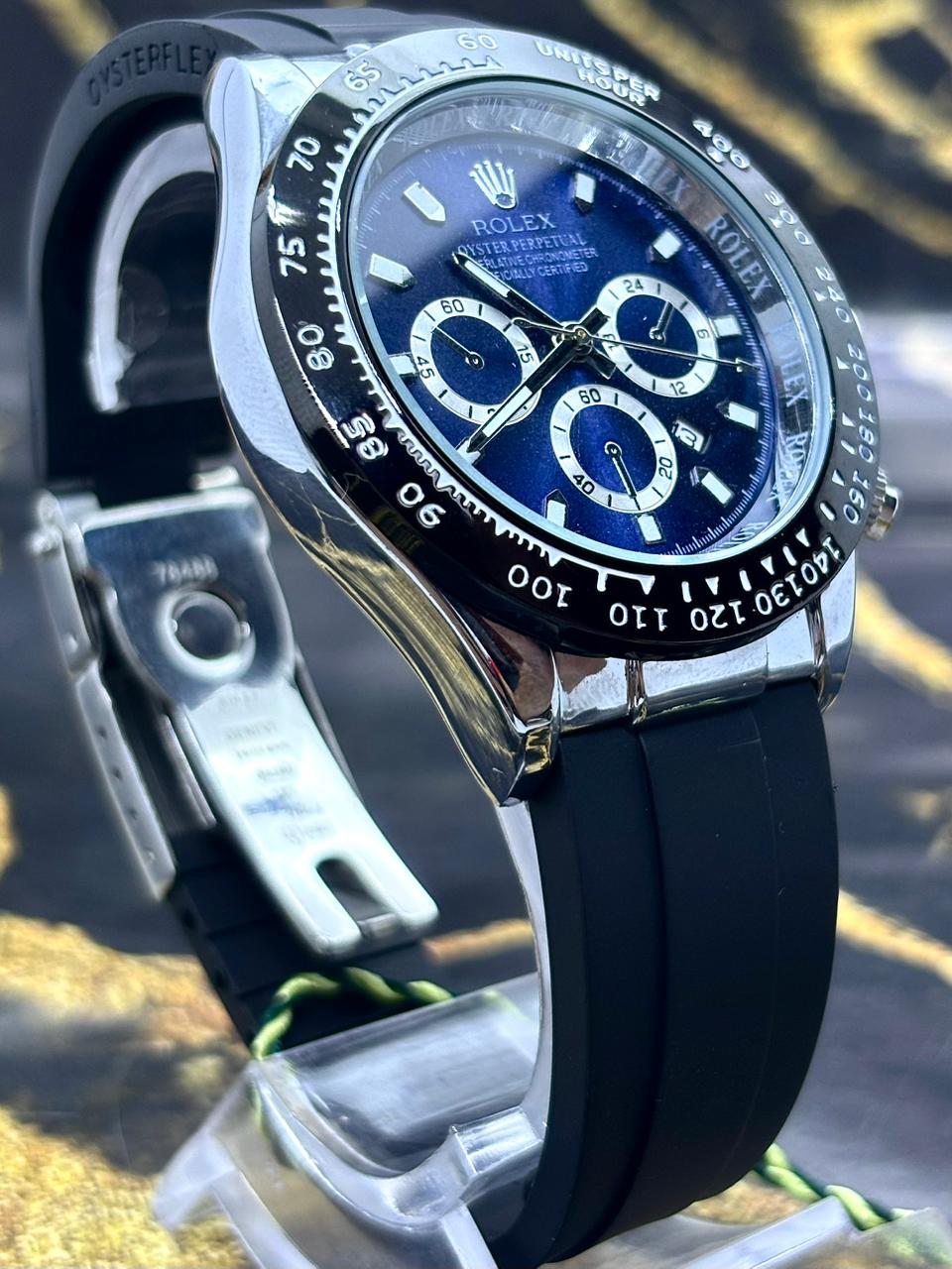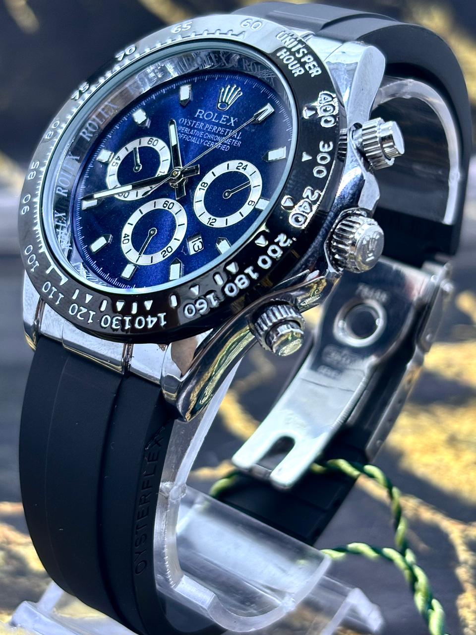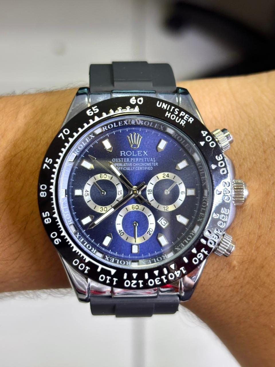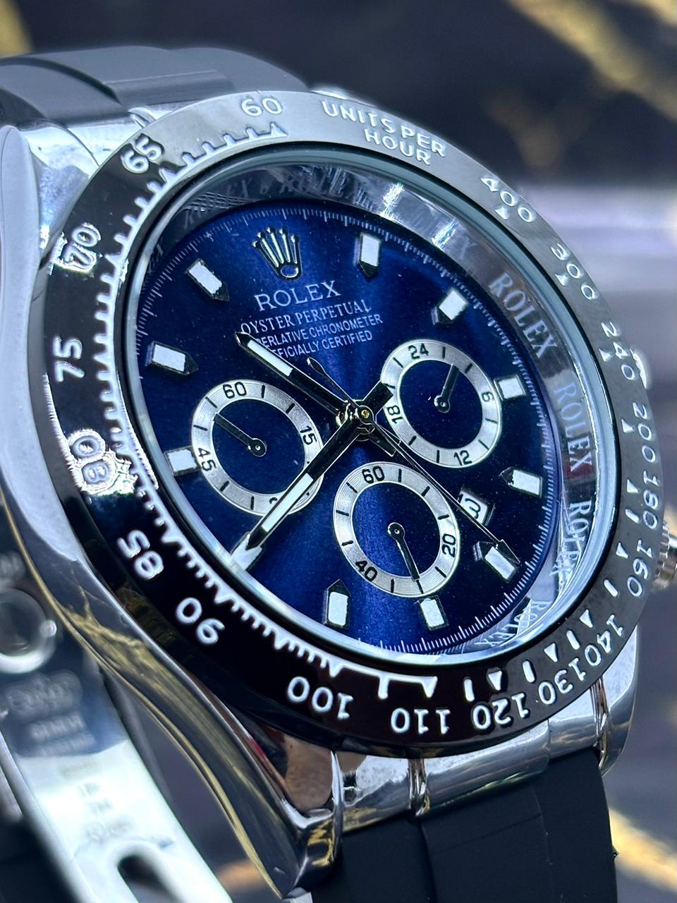 🎁 MEGA PROMOÇÃO Relógio Masculino Oyster Perpetual Patent Pulseira Silicone Preta Mostrando Azul Luxo + FRETE GRÁTIS