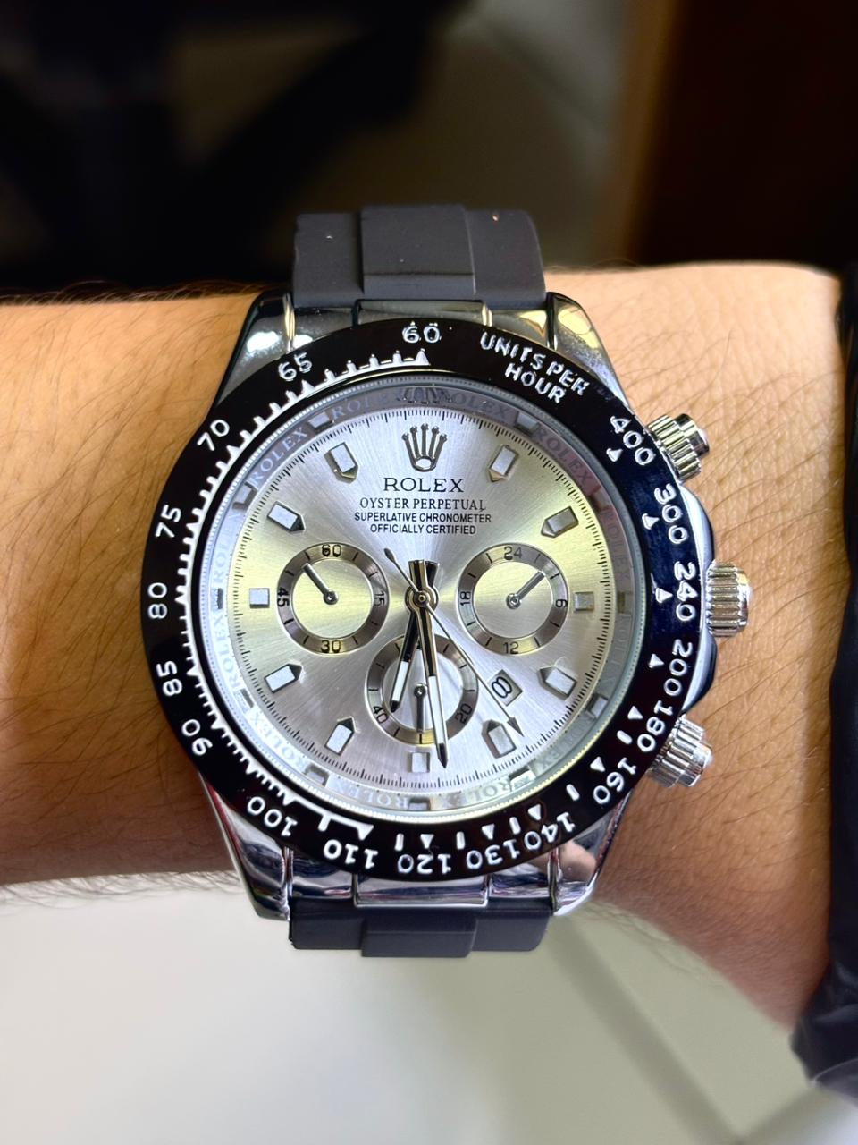 🎁 MEGA PROMOÇÃO Relógio Masculino Oyster Perpetual Patent Pulseira Silicone Preta Mostrando Branco Luxo + FRETE GRÁTIS