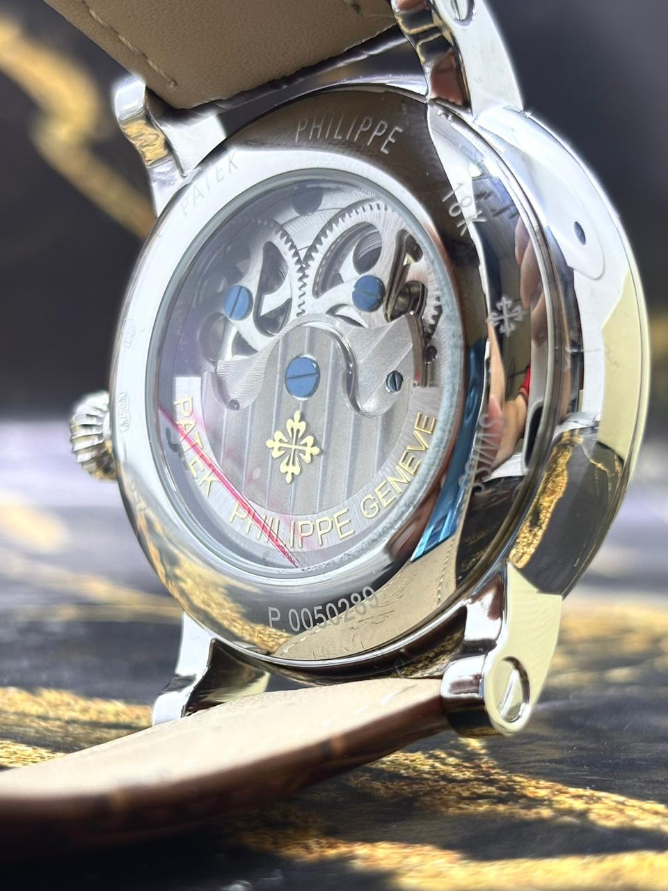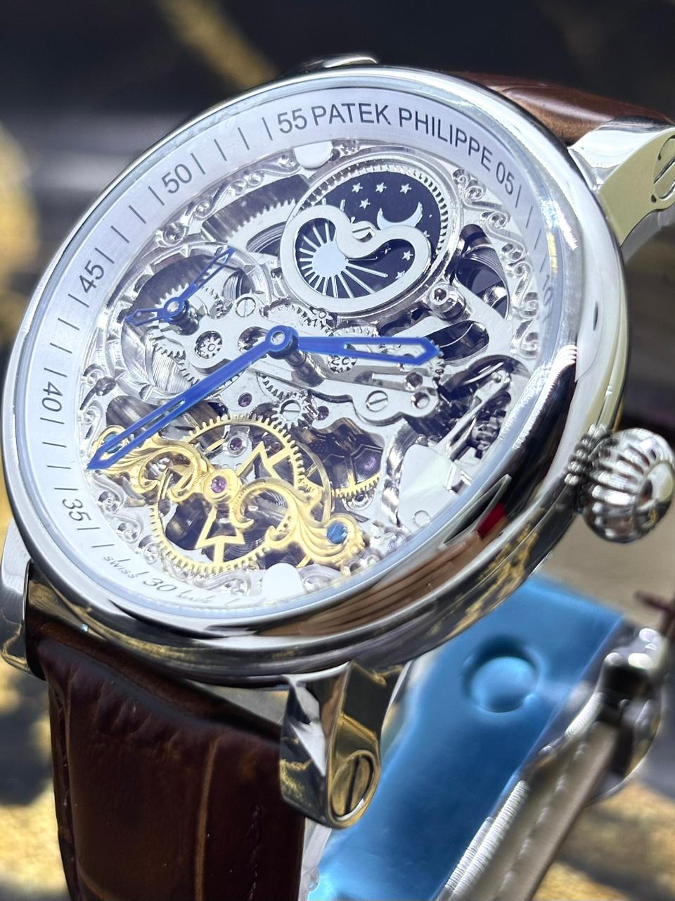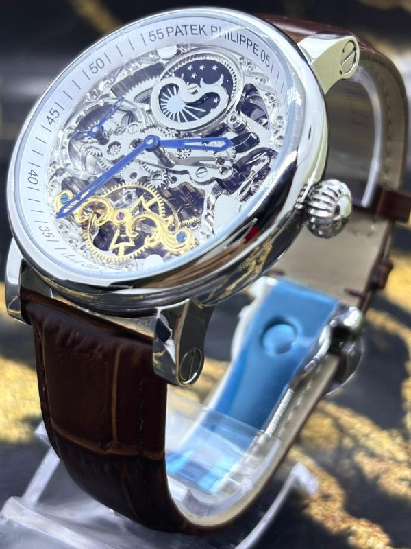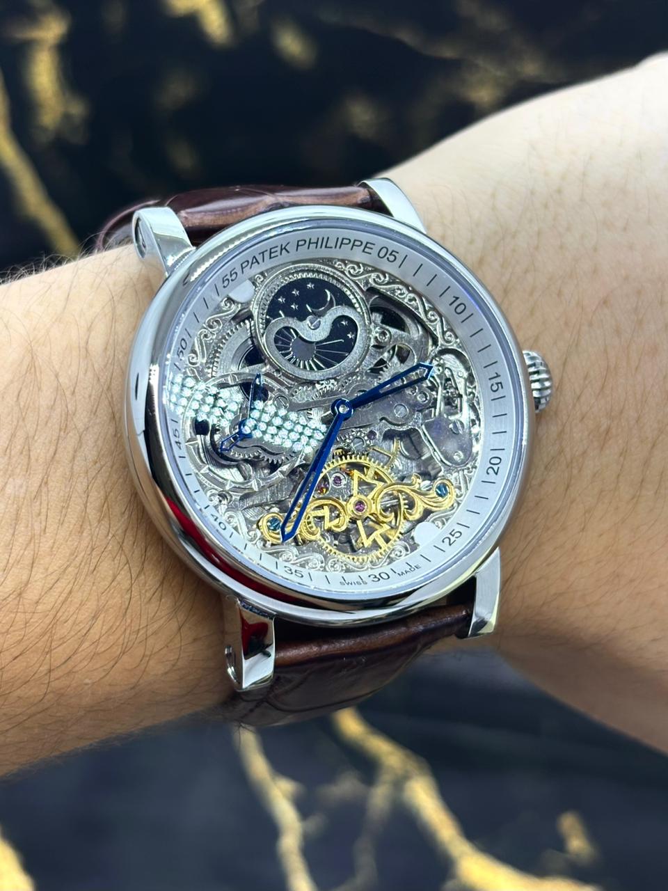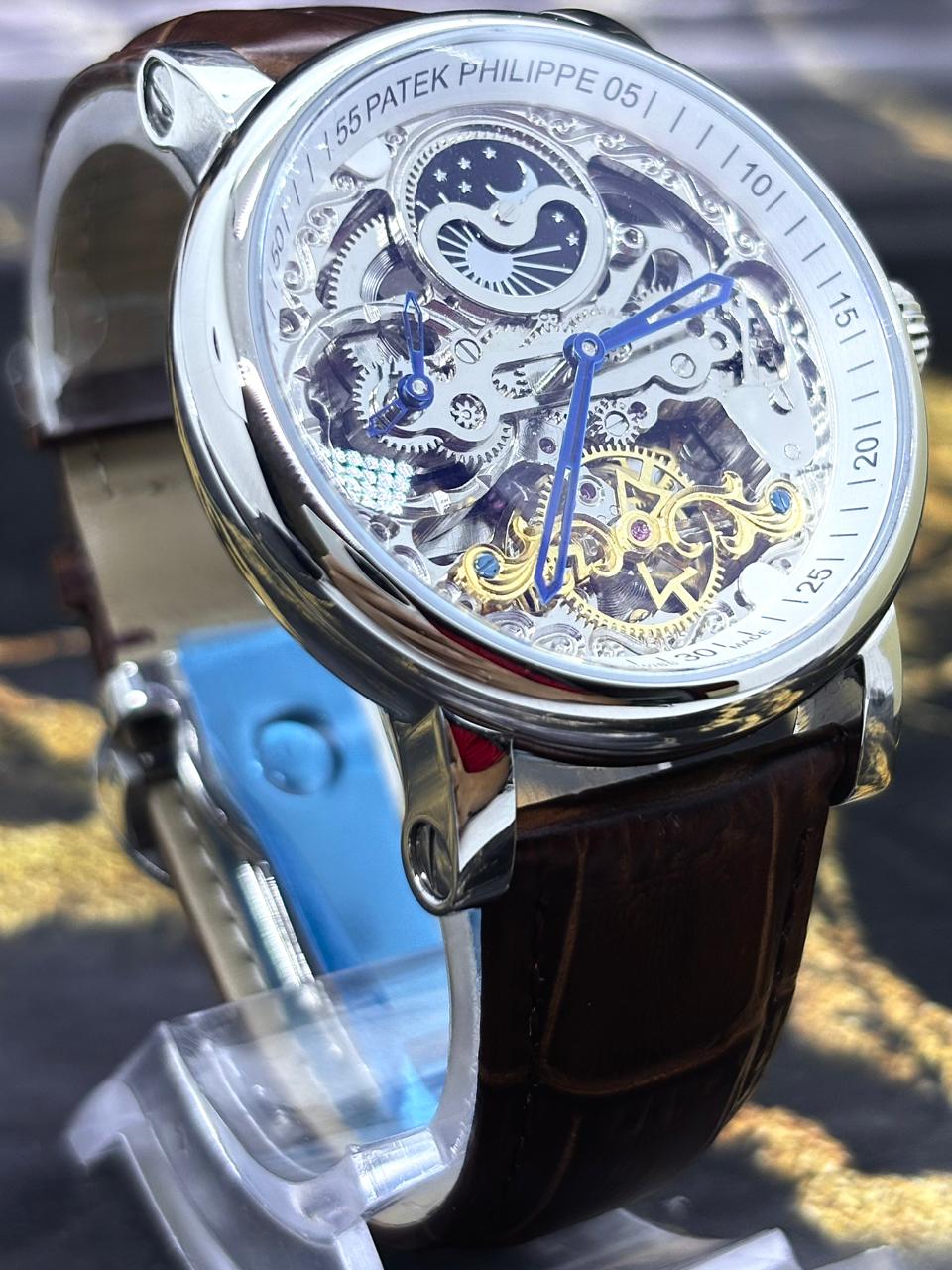 🎁 MEGA PROMOÇÃO Relógio Patek AUTOMÁTICO PREMIUM AAA+ Pulseira Couro Marrom Caixaria Prata Luxo e Destaque + FRETE GRÁTIS