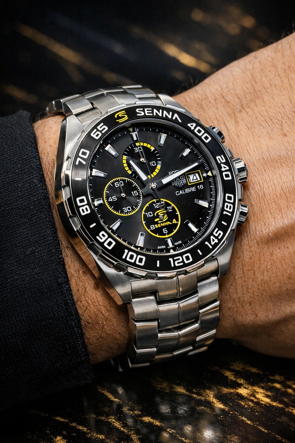 Adorna as cores amarelo e preto, em tributo às cores icônicas de Senna.