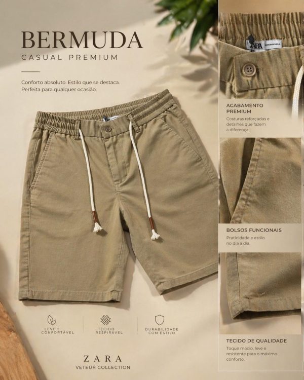 -33%🔥 Bermuda Casual Premium (Marrom Claro)