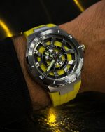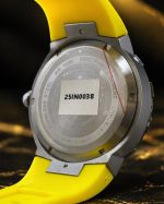 • Pulseira: Feita de silicone na cor amarela vibrante, com fecho de fivela simples.
