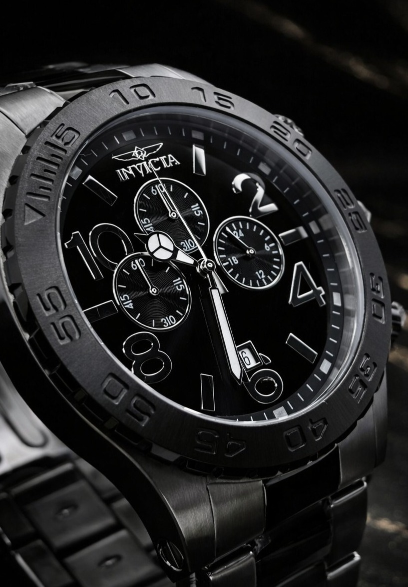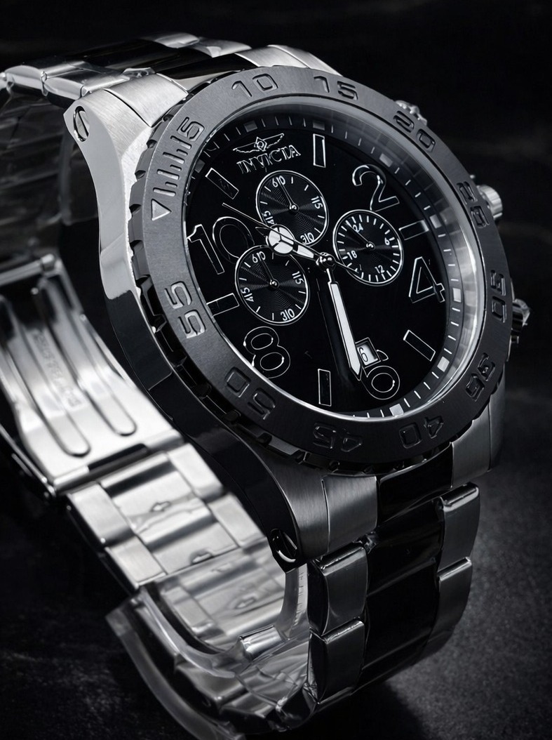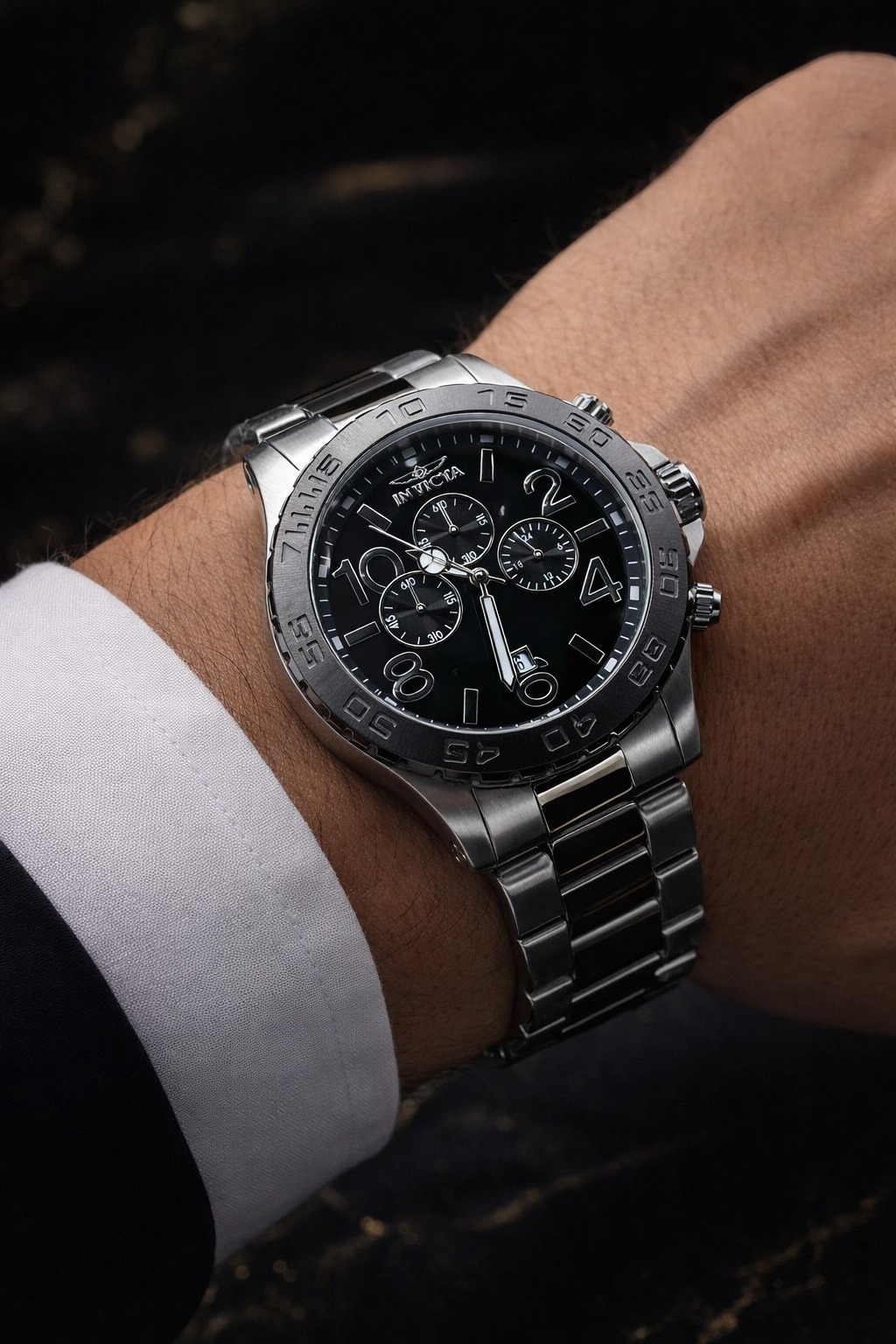 -56%Este relógio é o Invicta Specialty Chronograph (Modelo 40606), um modelo masculino robusto que combina um acabamento em aço inoxidável prateado com detalhes em preto.