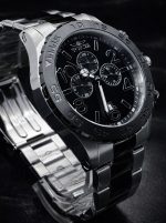 - Design: Possui uma caixa grande de 50 mm de diâmetro e um mostrador preto metálico com algarismos arábicos prateados.