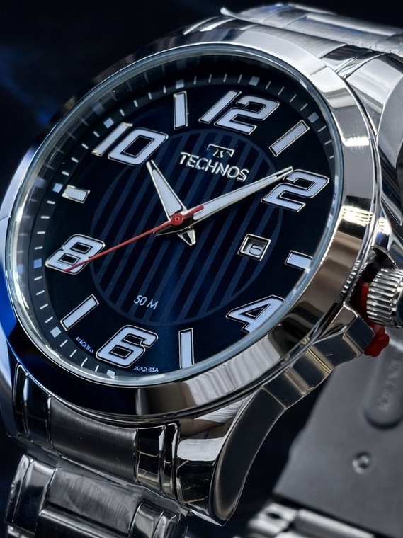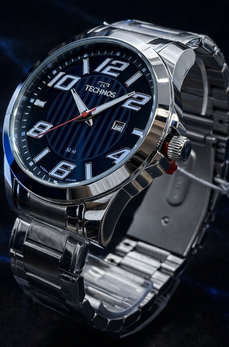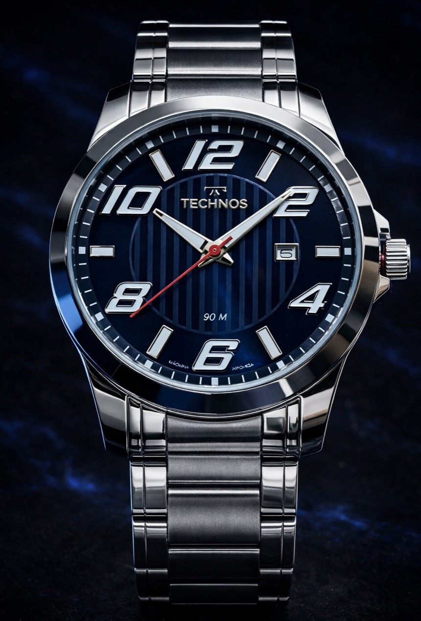 - Funcionalidades: Mecanismo analógico quartz (Miyota) com exibição de horas, minutos, segundos e calendário de data.