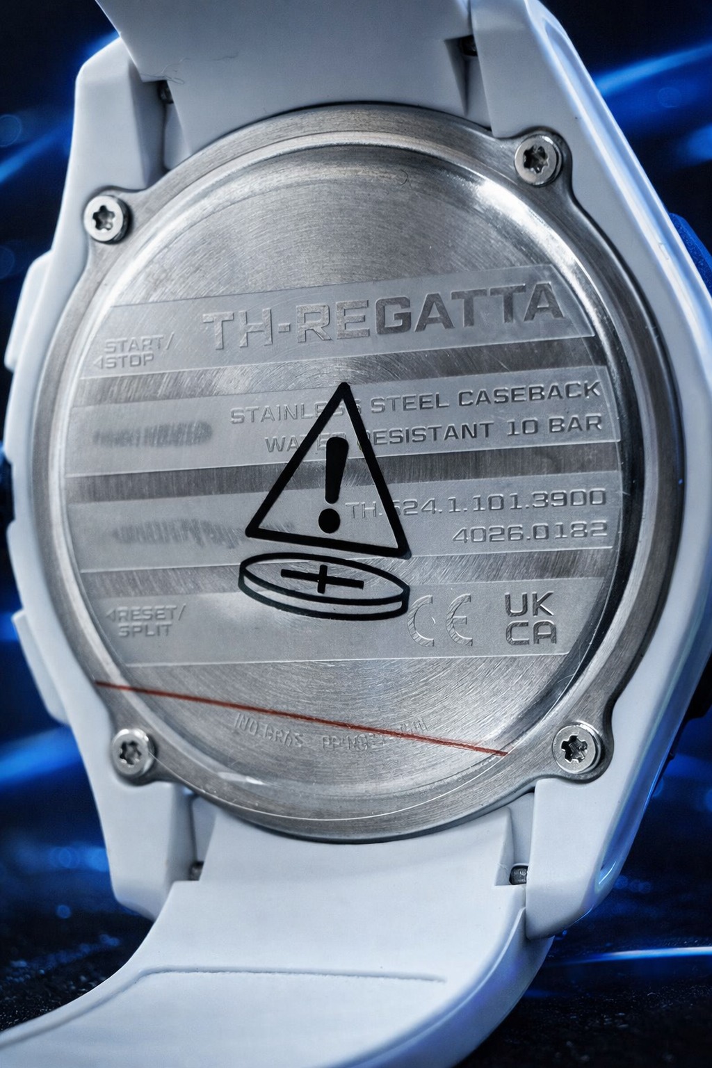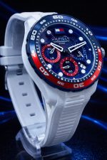 Recursos: Mostrador transparente dimensional, bezel giratório esportivo e resistência à água de até 10 BAR.