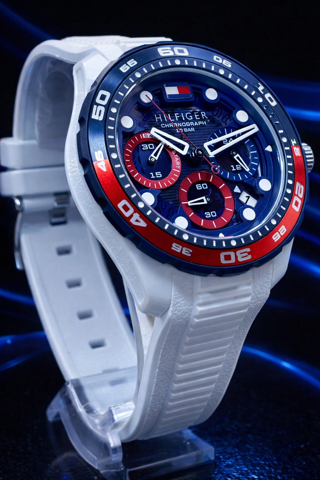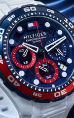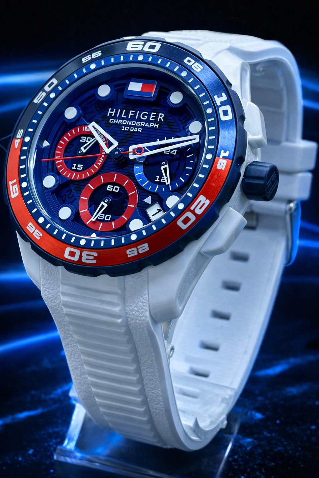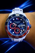 🎁 PROMOÇÃO Relógio Tommy Hilfiger Original Pulseira Branca Coroa Azul e Vermelha (Destaque Absoluto) + FRETE GRÁTIS