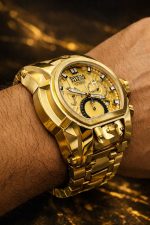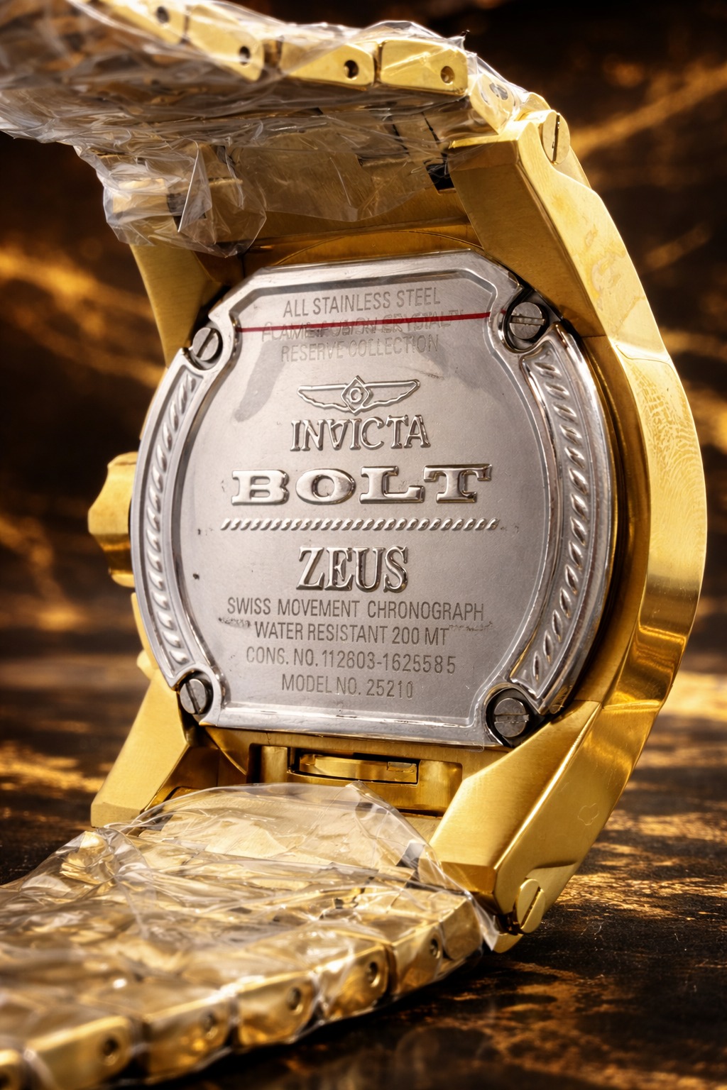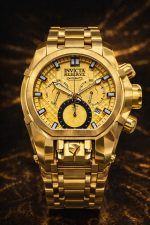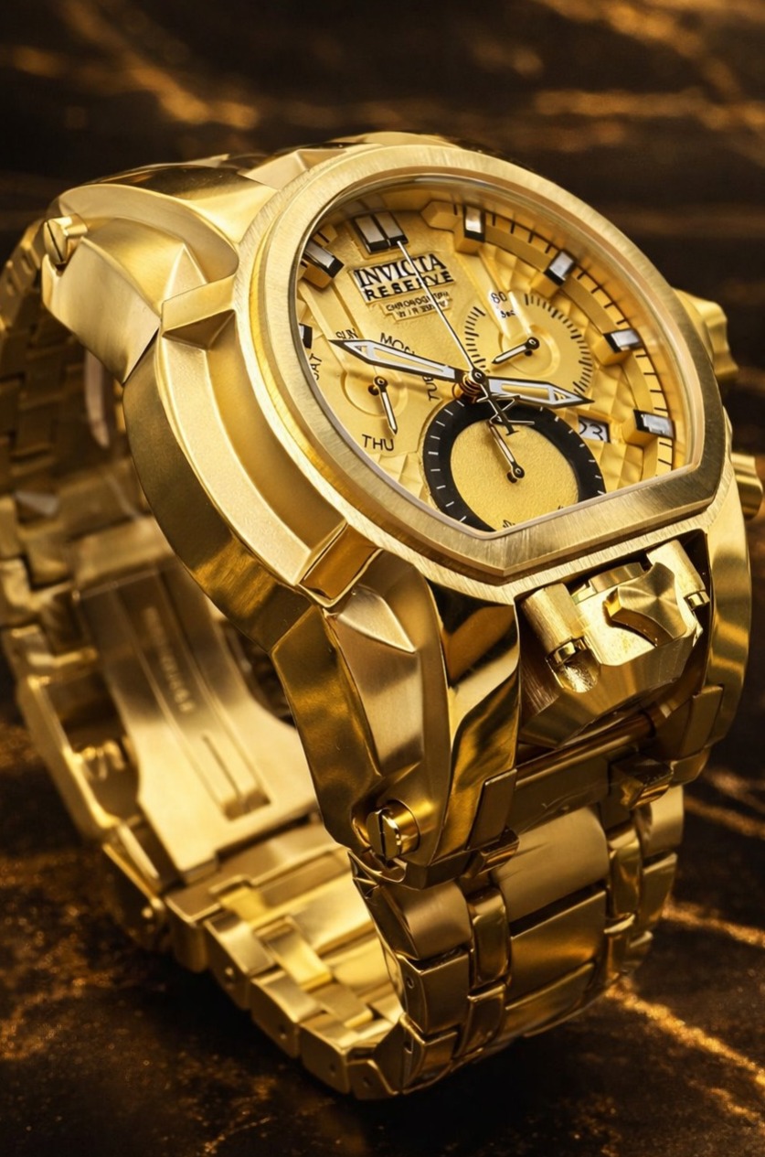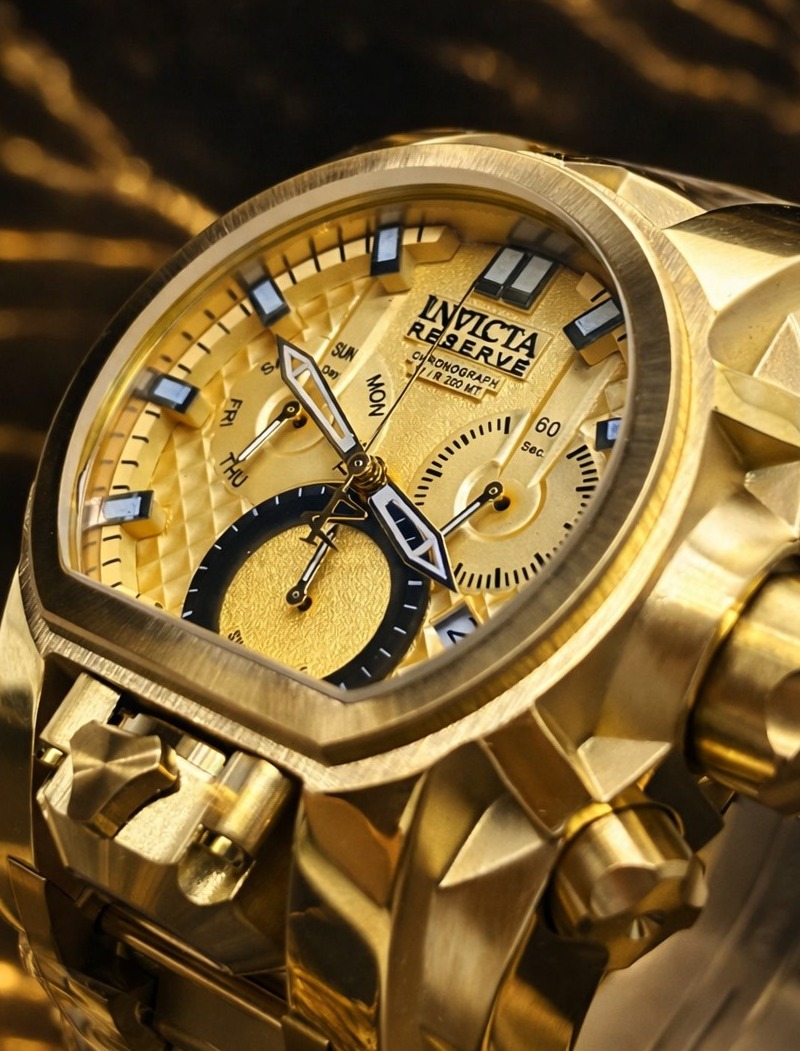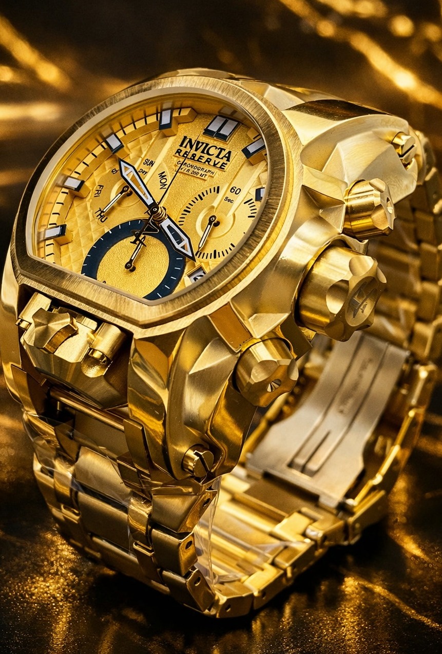 -60%Invicta Reserve Bolt Zeus Magnum, um modelo imponente conhecido por seu design robusto e acabamento luxuoso em tom dourado.