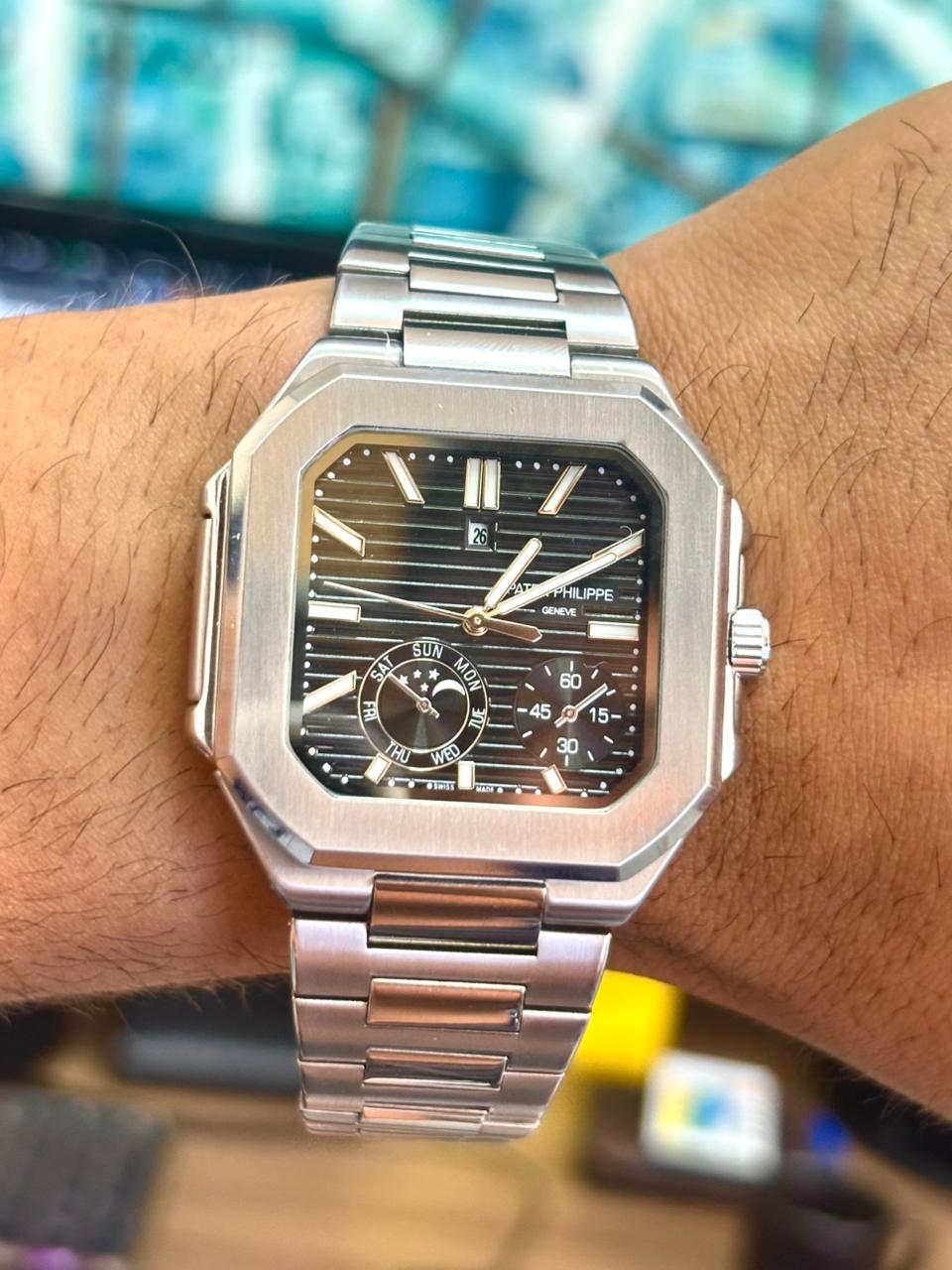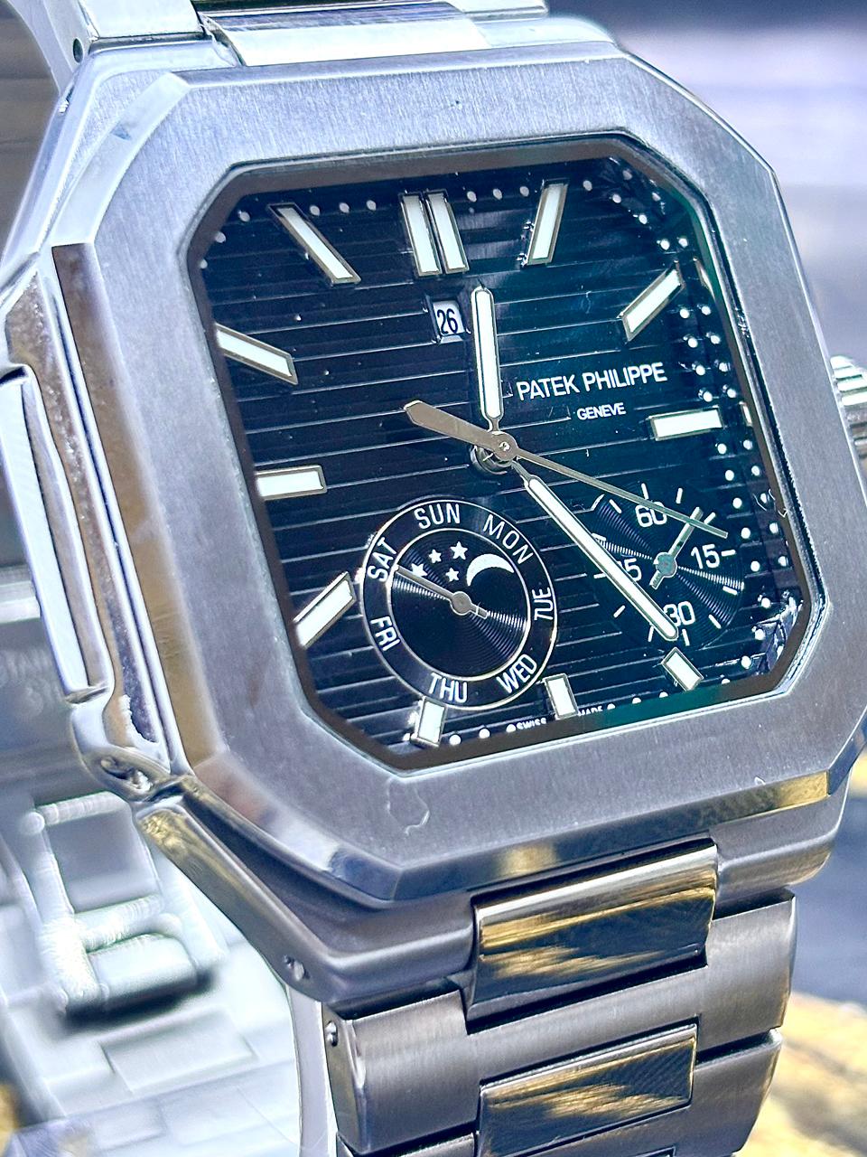 🎁 BLACK DEZEMBRO Patek Prata Aço Inox Mostrador Preto Luxo e Sofisticação + Frete Grátis