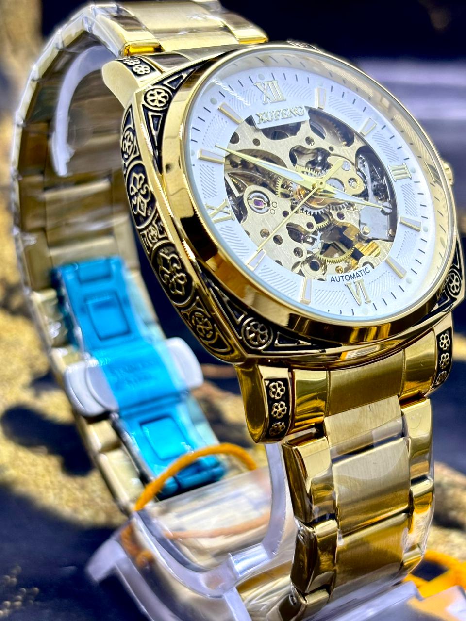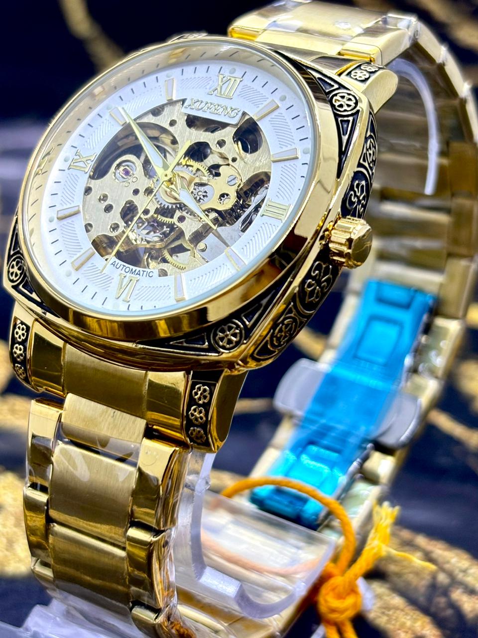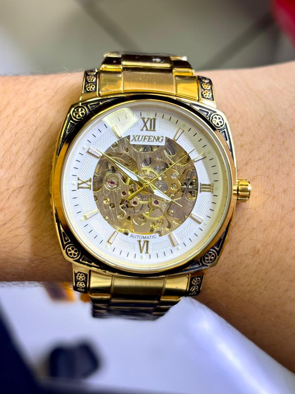 🎁 BLACK DEZEMBRO Relógio Automático Xufeng Dourado Mostrador Branco Edição Limitada Banhado Luxo e Destaque PROVA D’ÁGUA + FRETE GRÁTIS