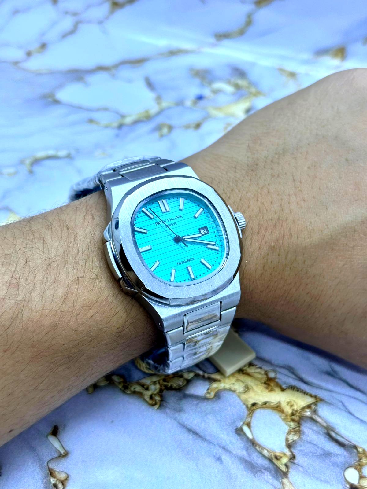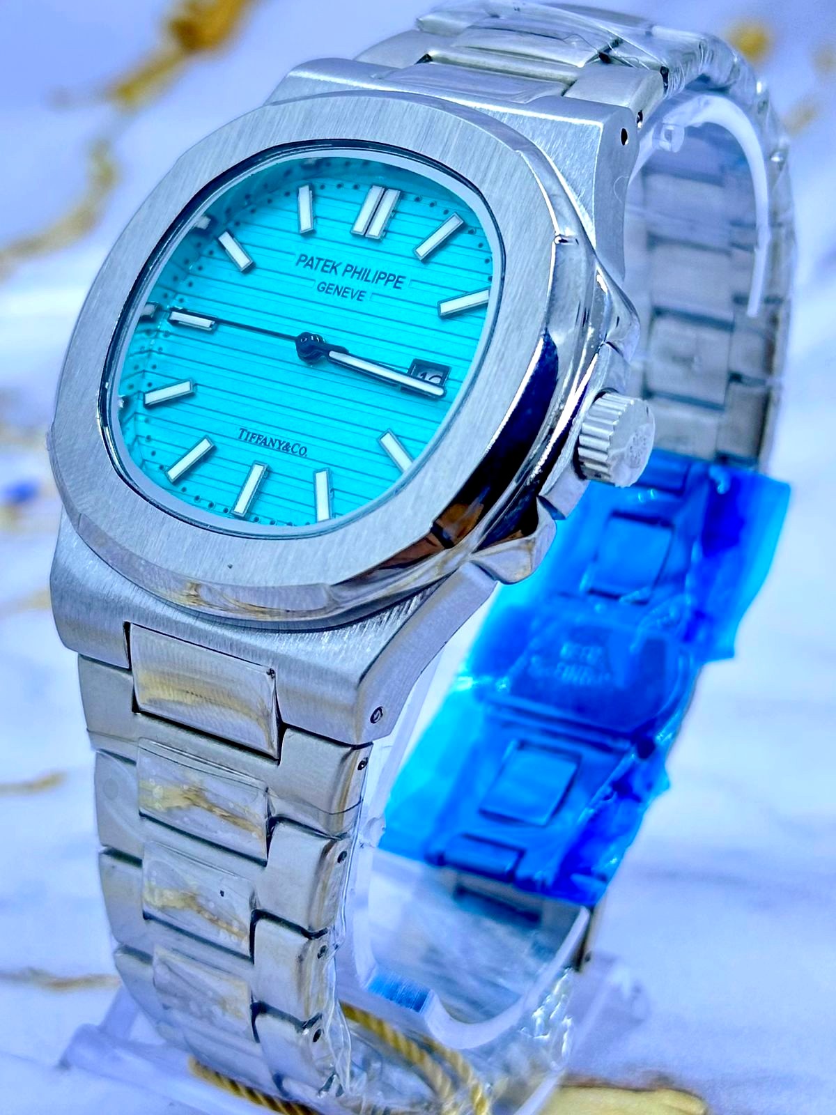 🎁 BLACK DEZEMBRO Patek Tiffany&co Prata Mostrador Azul Claro Luxo e Destaque Pura Sofisticação PROVA D’água + Frete Grátis