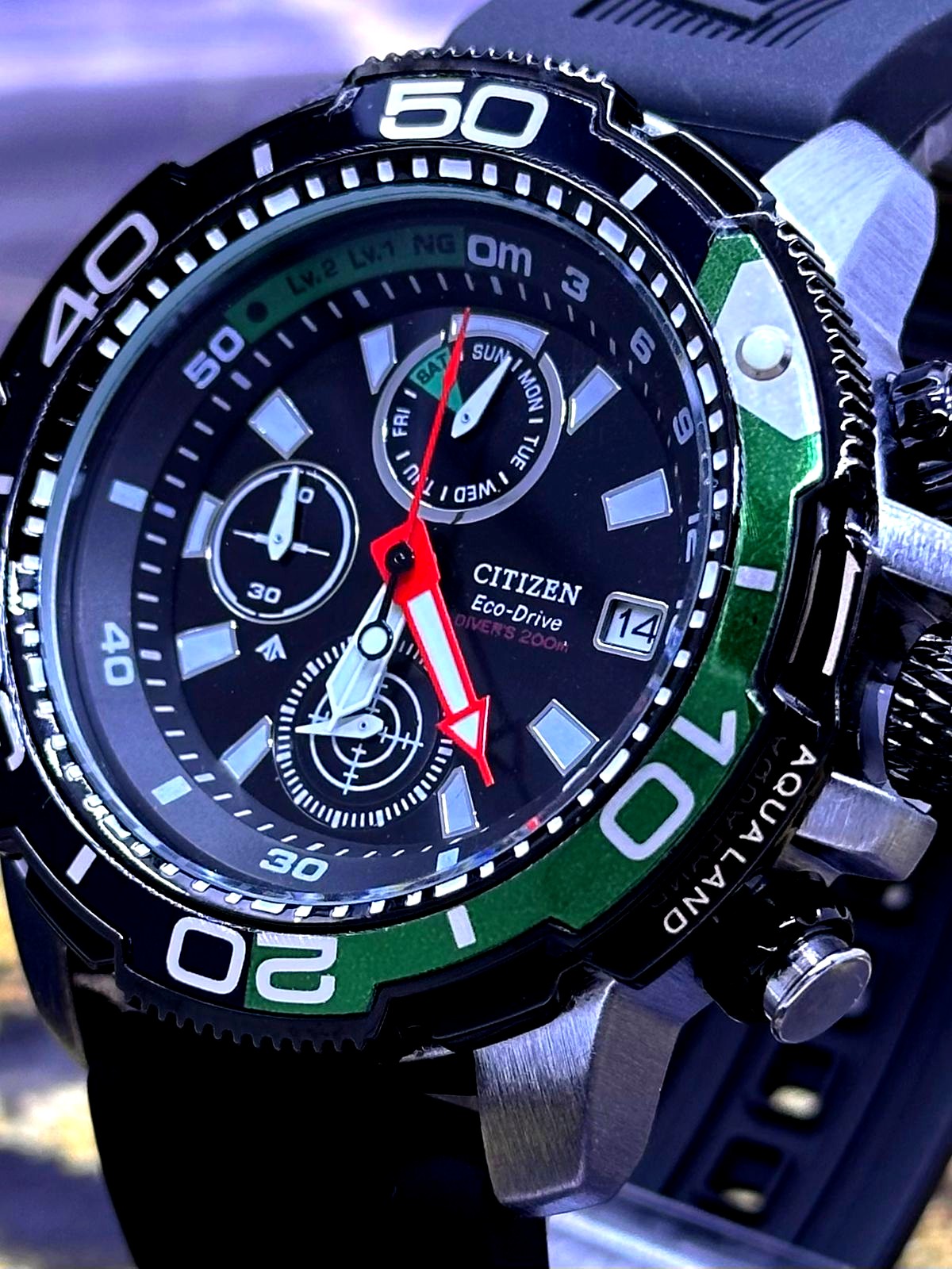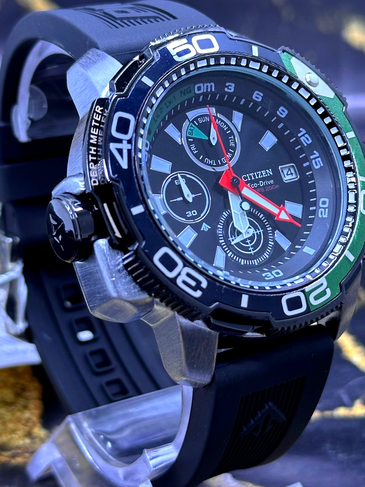 🎁 MEGA PROMOÇÃO Relógio Citizen Eco Drive Preto Detalhe Verde 100% Funcional Luxo e Destaque + FRETE GRÁTIS