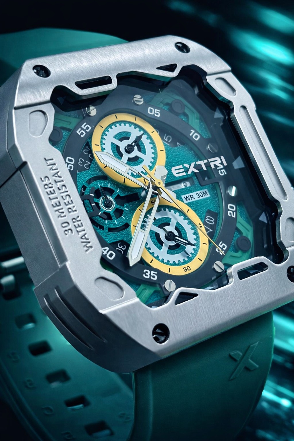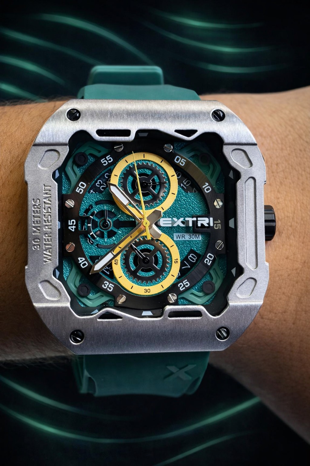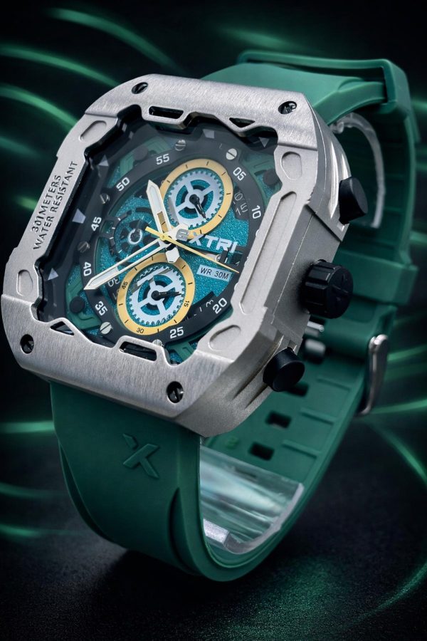 O Relógio Extri Original com Pulseira Verde Água é a grande novidade de 2026 para quem gosta de sair do básico e apostar em um visual moderno e diferenciado. A tonalidade verde água traz leveza e exclusividade, enquanto o design sofisticado garante presença em qualquer ocasião.