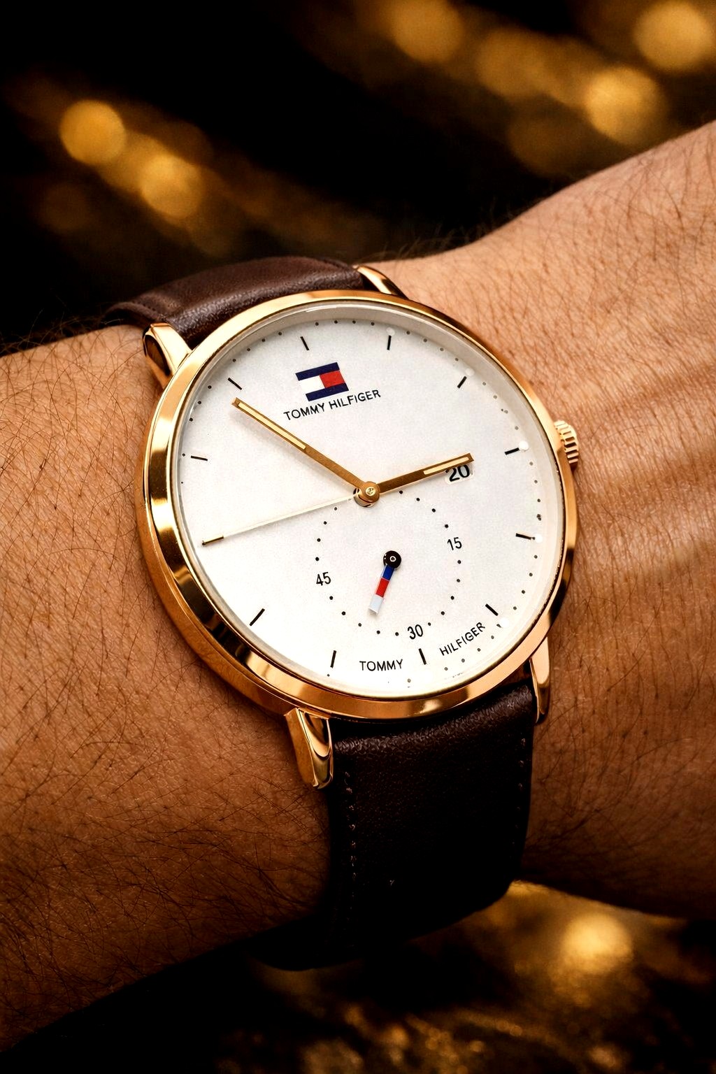 🎁 MEGA NOVIDADE COM PROMOÇÃO Relógio Tommy Social Luxuoso Funcional Pulseira Couro Sintético Marrom Luxo e Destaque + FRETE GRÁTIS