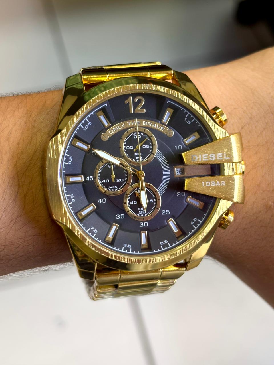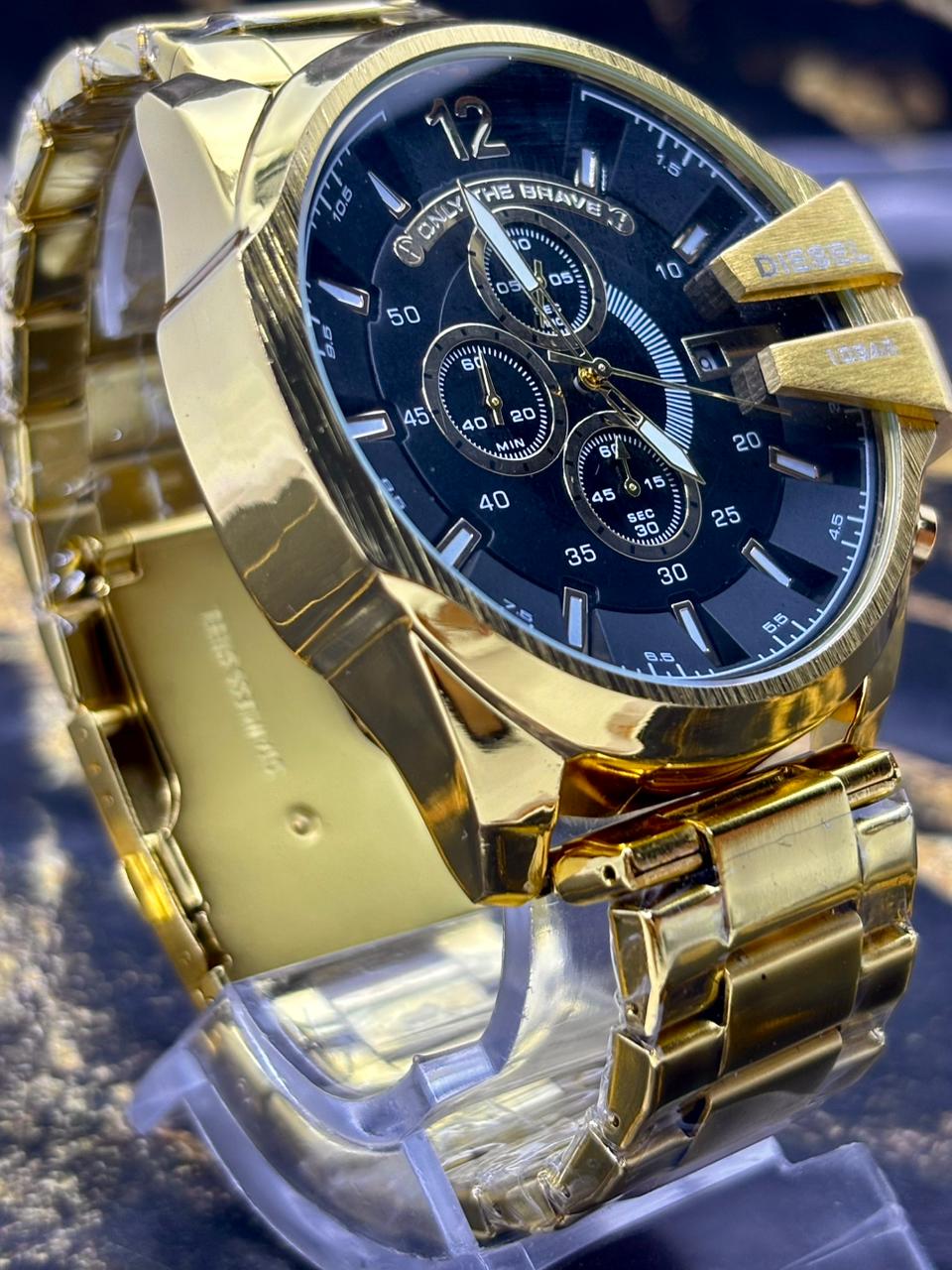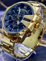 Com design moderno e imponente, esse modelo possui mostrador preto elegante, acabamento banhado de alta qualidade e construção robusta para quem gosta de se destacar em qualquer ocasião — seja no dia a dia, trabalho ou eventos especiais.