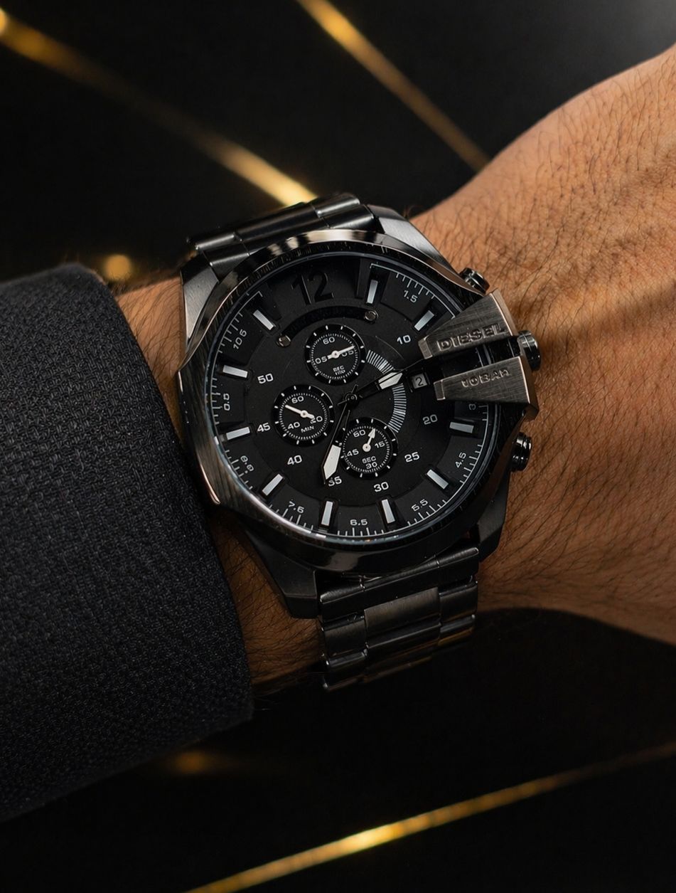 Pulseira em AƧo Inox Preta, Caixa Preta, Mostrador Preto (Destaque Absoluto)