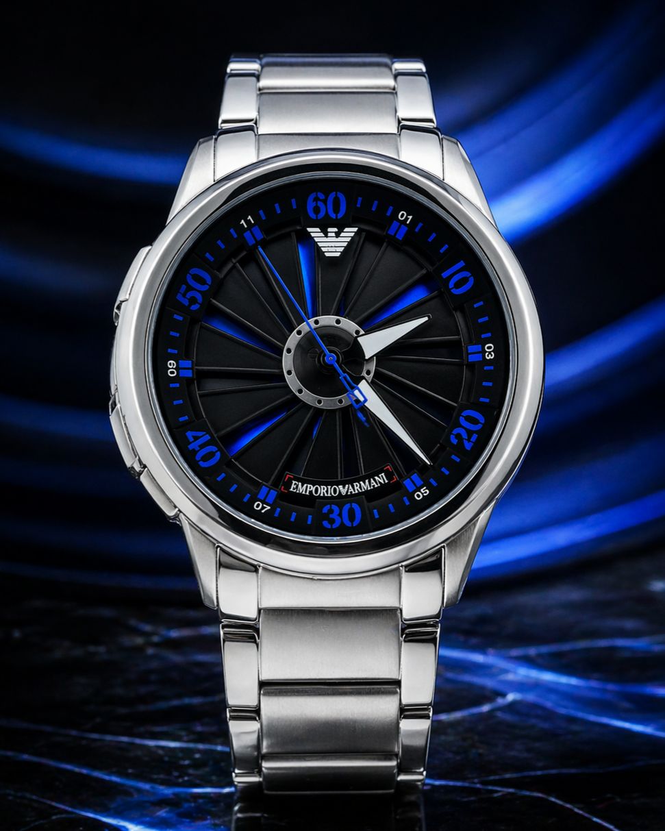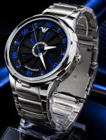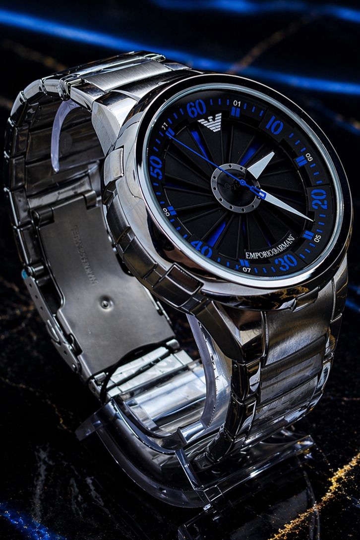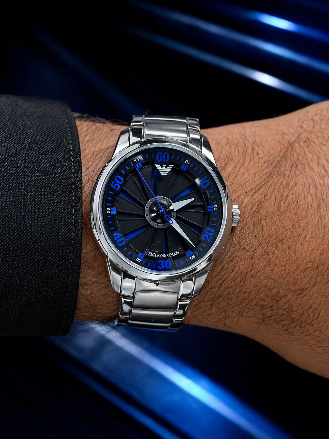 🎁 MEGA PROMOÇÃO Relógio Arman Roleta Funcional Prata Mostrador Preto e Azul Luxo e Destaque + FRETE GRÁTIS