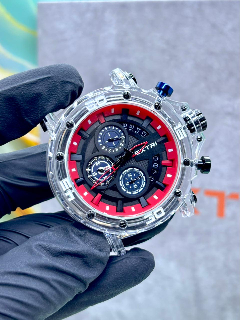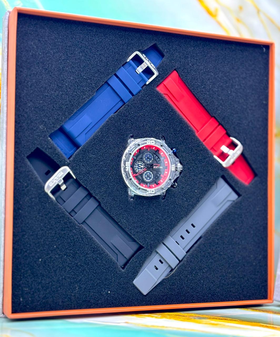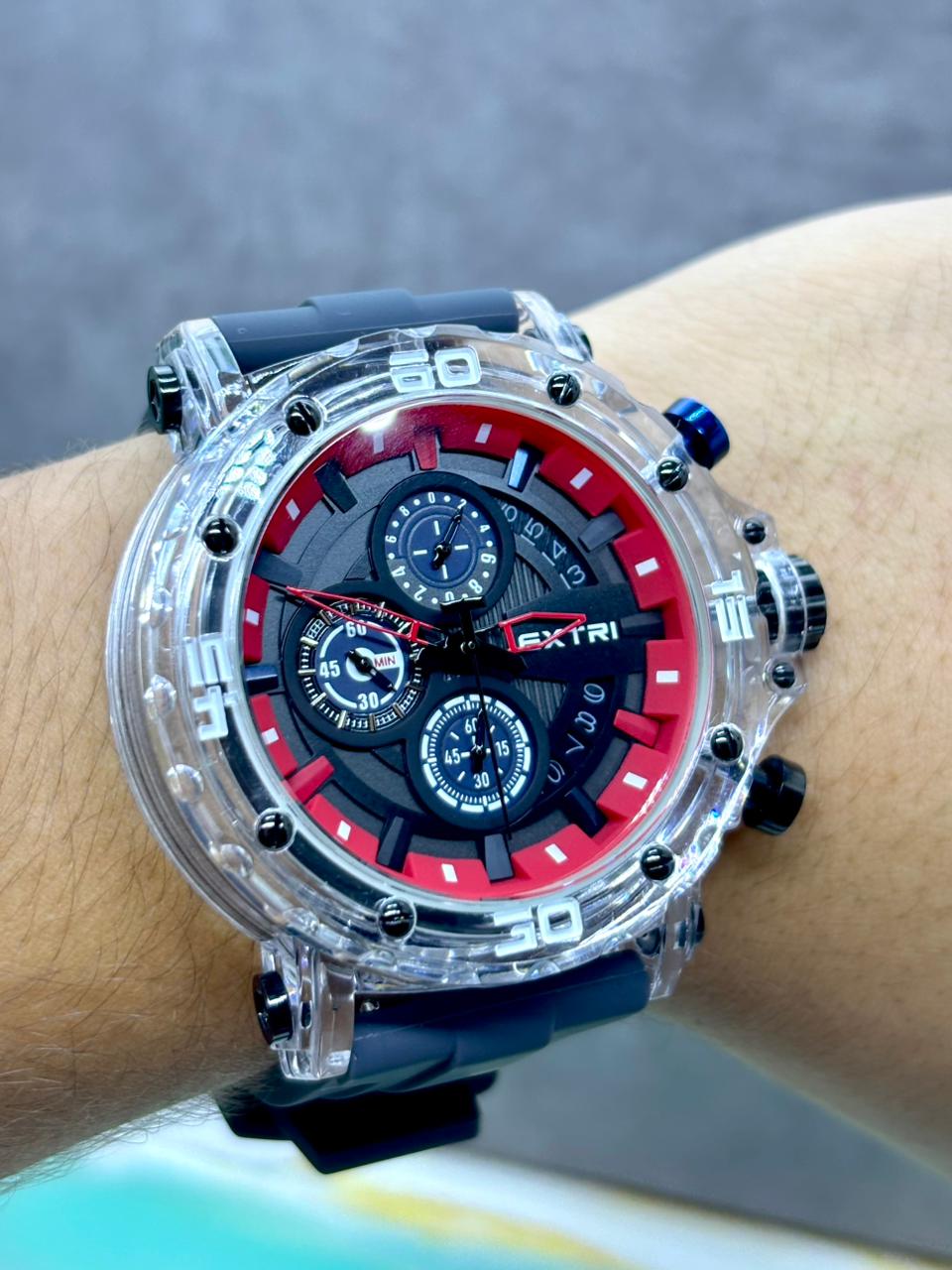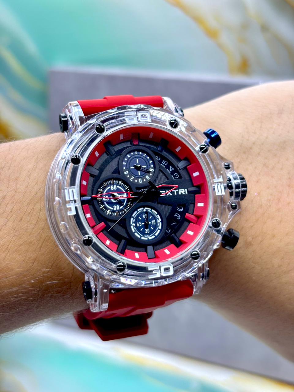 🎁 MEGA PROMOÇÃO Relógio Extri 100% Funcional 4 Pulseiras Completo Mostrador Vermelho com Preto + FRETE GRÁTIS