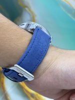 ✨ Pulseira em Camurça / Azul, Caixaria Prata, Mostrador Azul (Destaque Absoluto)