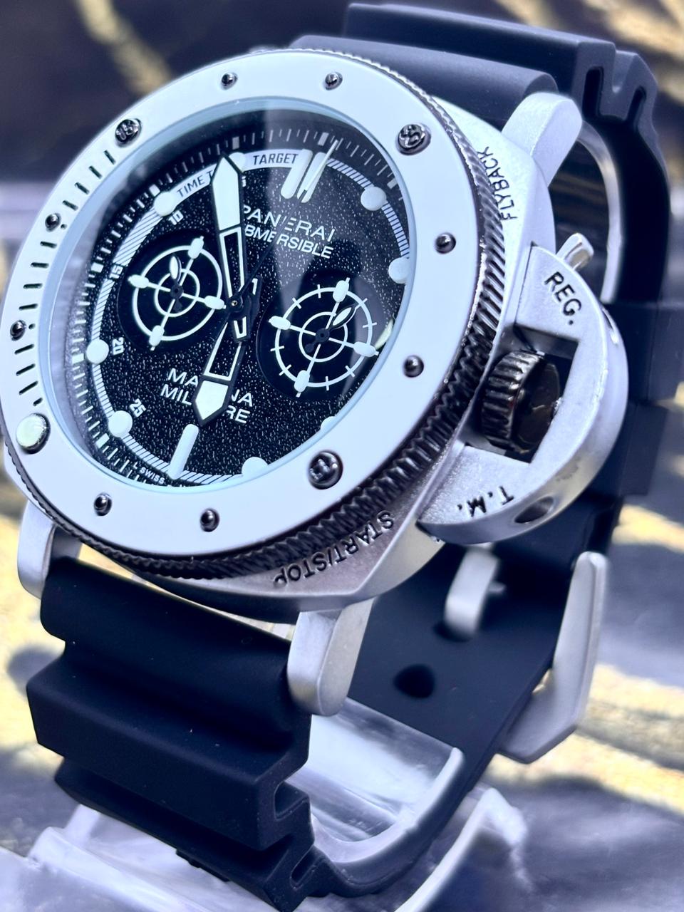 🎁 MEGA PROMOÇÃO Relógio Pane PROVA D’ÁGUA ALL BLACK Caixa Prata Detalhes Branco Luxo Destaque e Ousadia + FRETE GRÁTIS