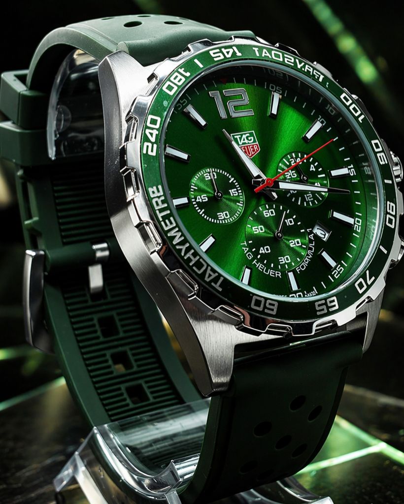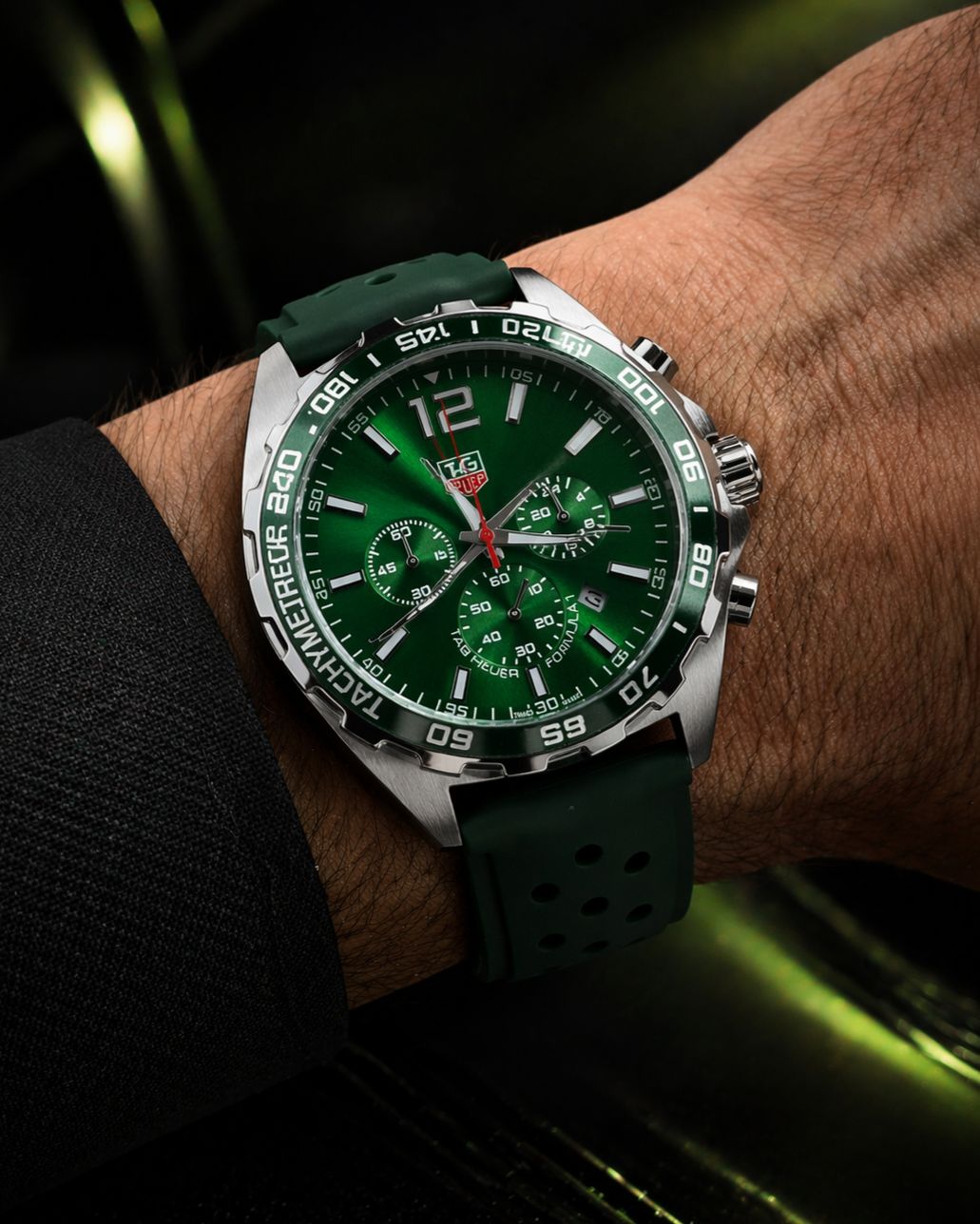 🎁 MEGA PROMOÇÃO Relógio Tag Fórmula 1 Pulseira Verde Esmeralda e Mostrador Verde Extremamente Luxuoso e de Destaque + FRETE GRÁTIS