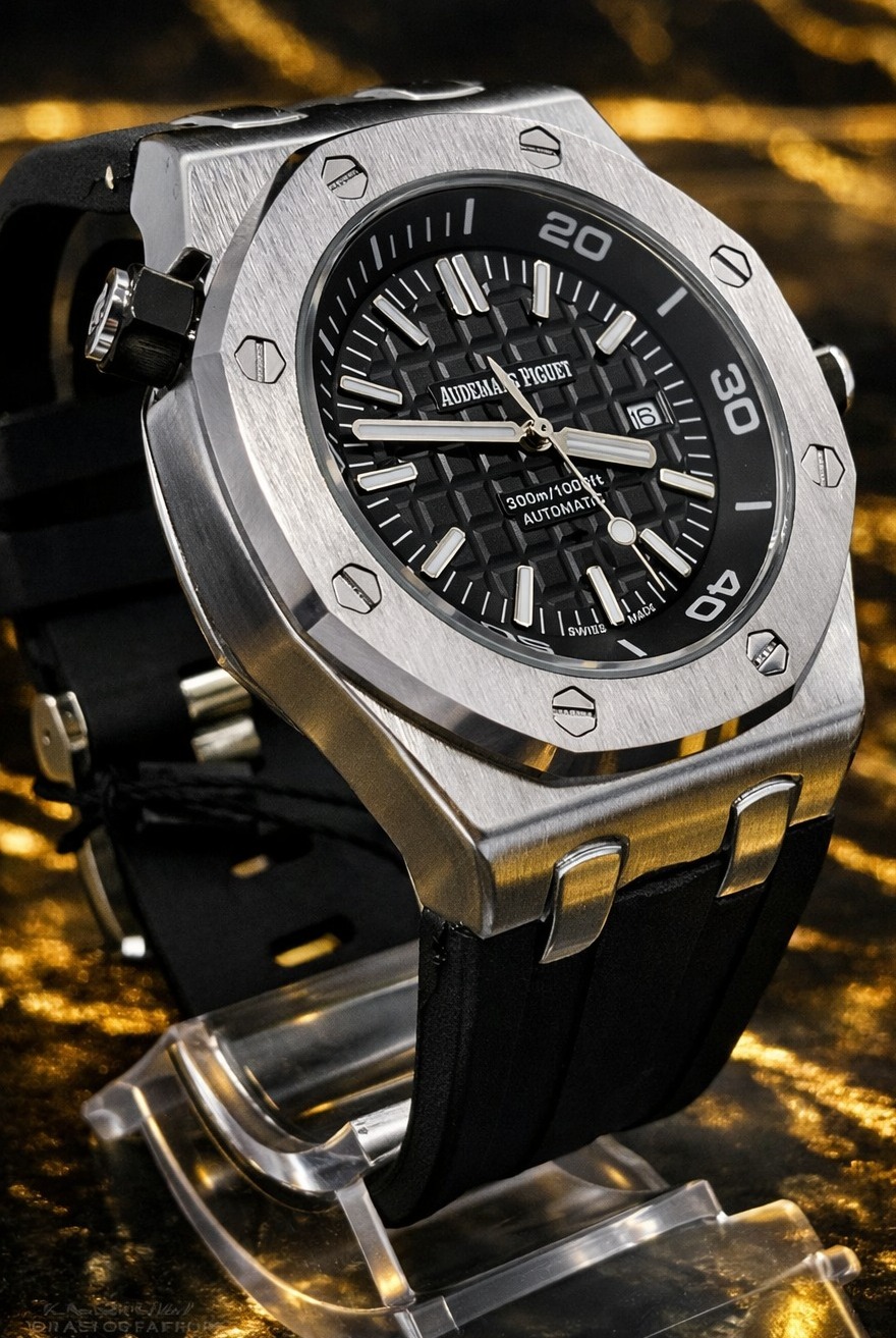 🎁 NOVIDADE 2026 EM PROMOÇÃO Relógio Audemars Pulseira Preta Caixa Aço Inox Pura Sofisticação + FRETE GRÁTIS