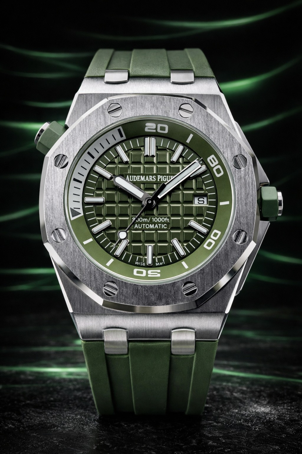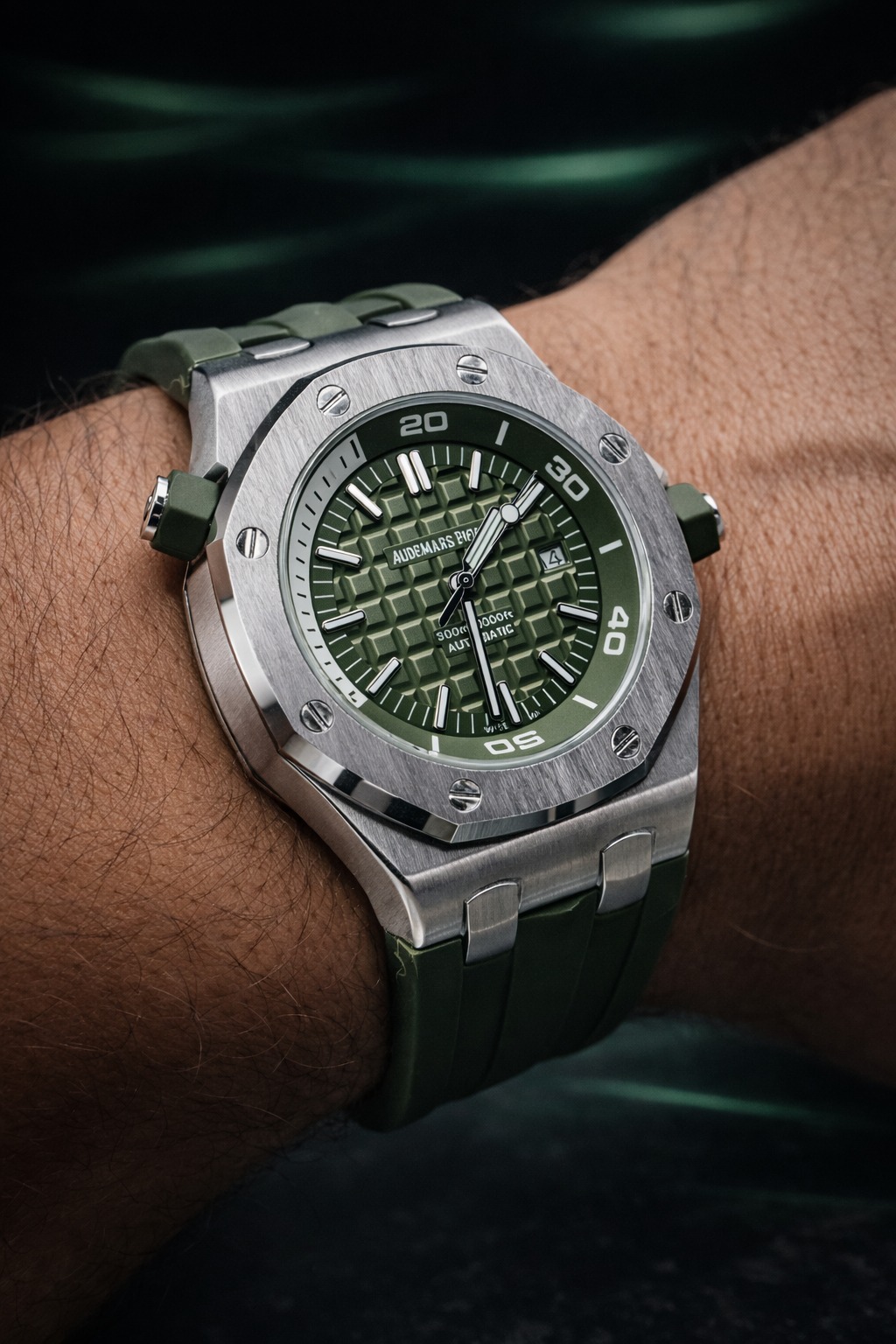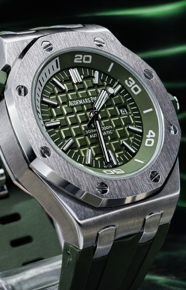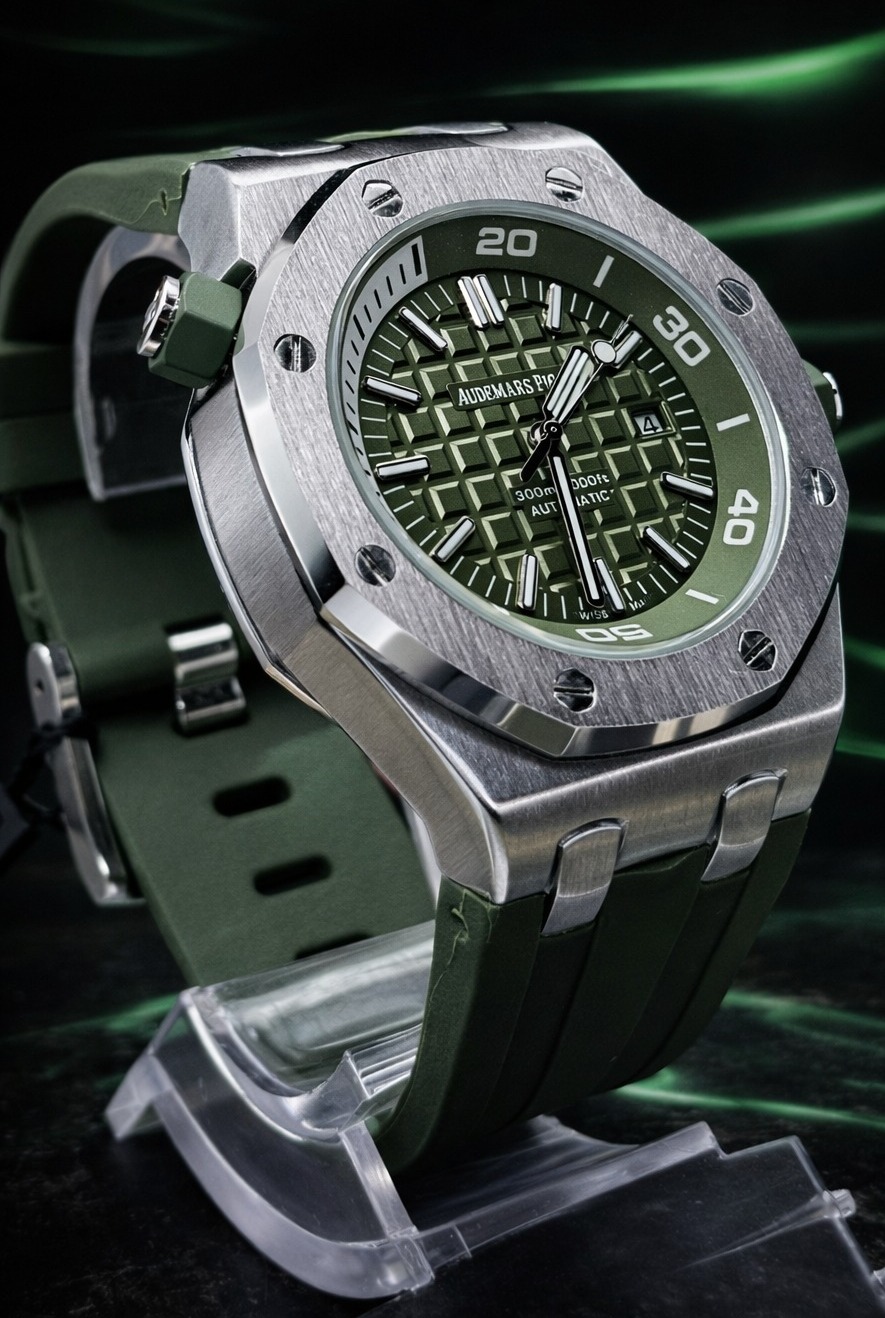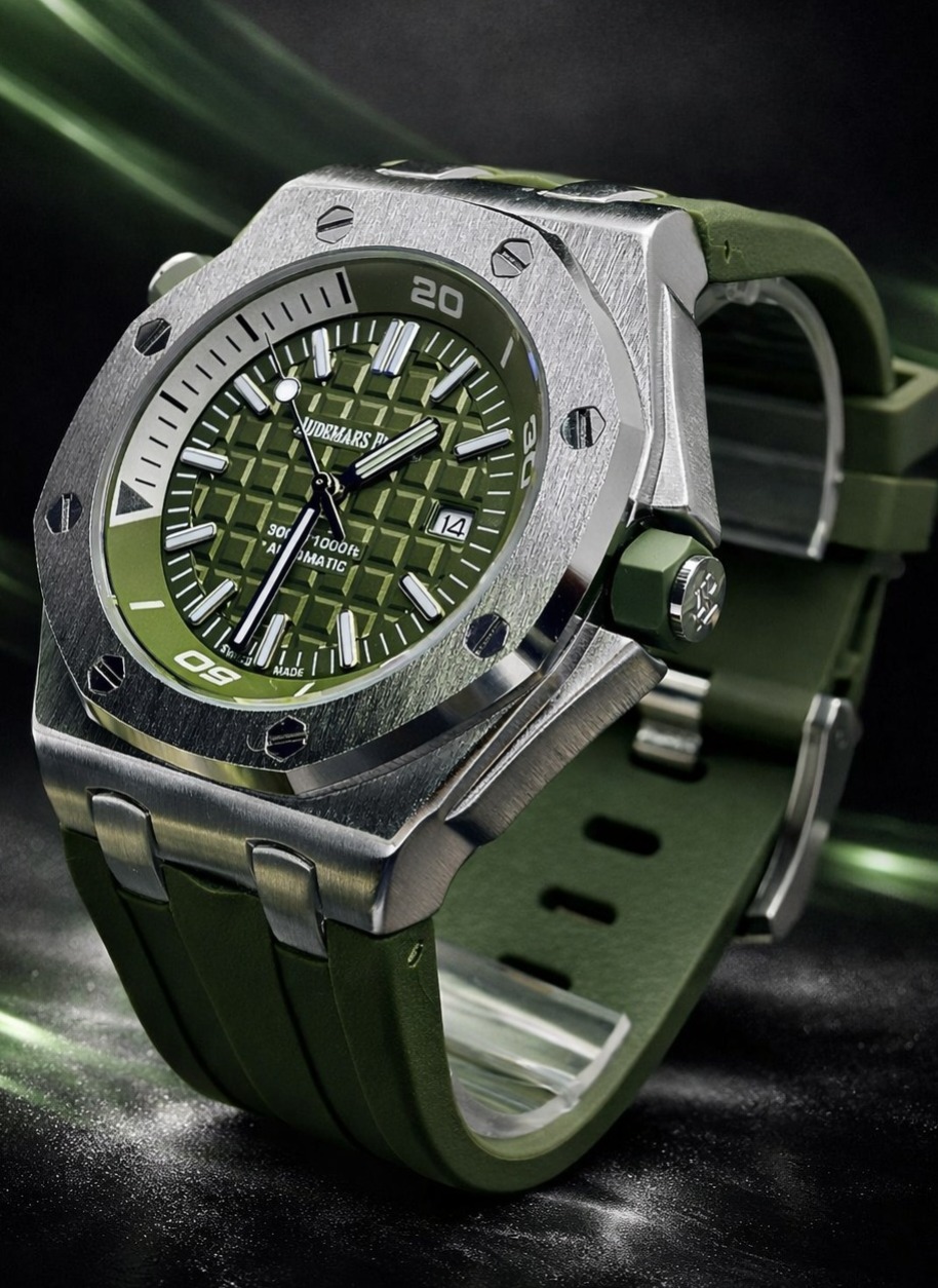 🎁 NOVIDADE 2026 EM PROMOÇÃO Relógio Audemars Pulseira Verde Luxuosa Caixaria Aço Inox Pura Sofisticação + FRETE GRÁTIS