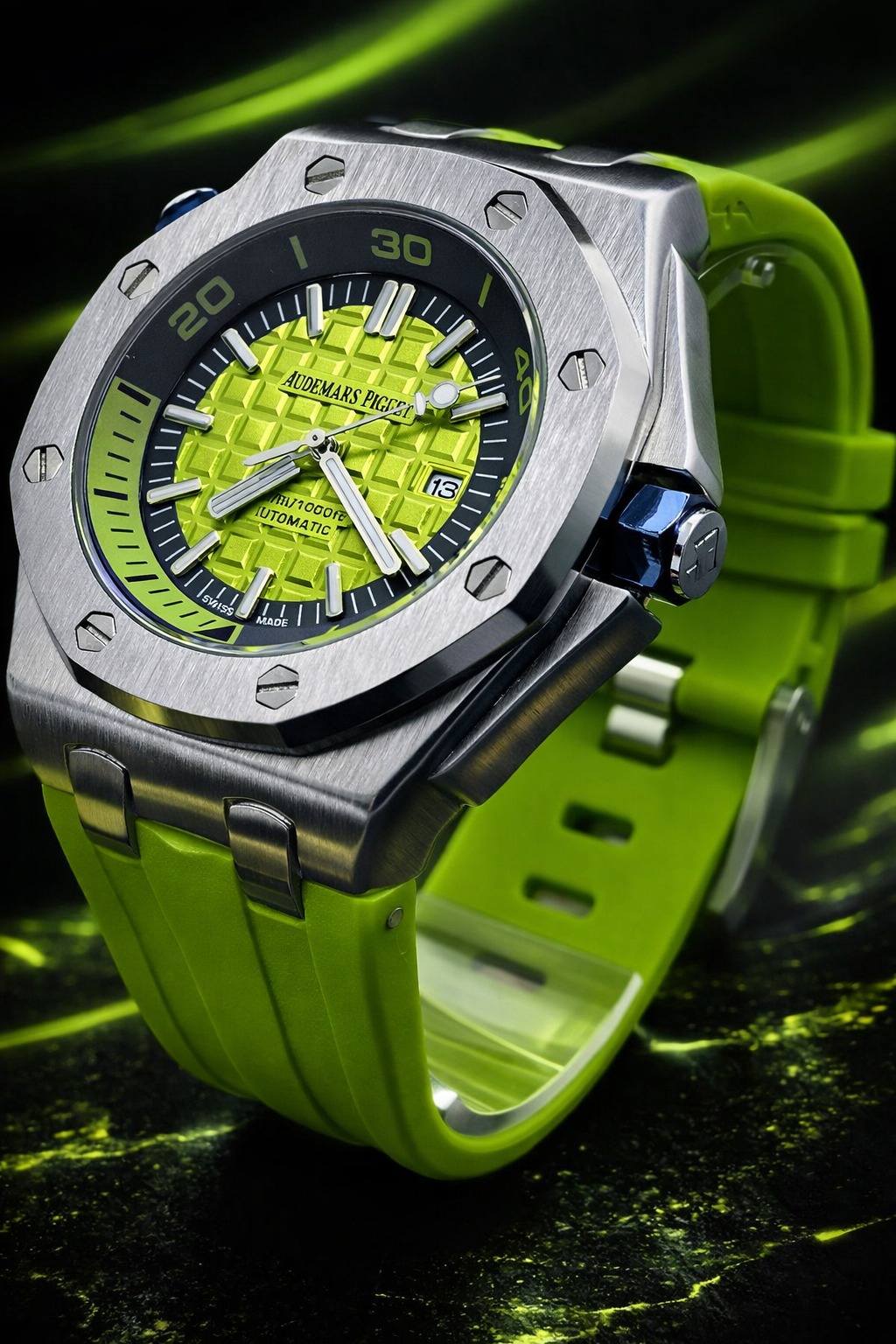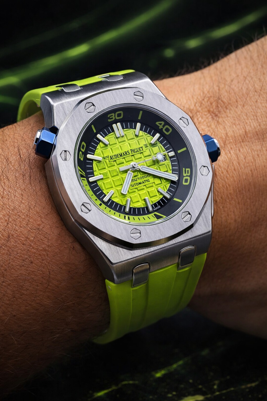 🎁 NOVIDADE 2026 EM PROMOÇÃO Relógio Audemars Pulseira Verde Caixa Aço Inox Pura Sofisticação + FRETE GRÁTIS