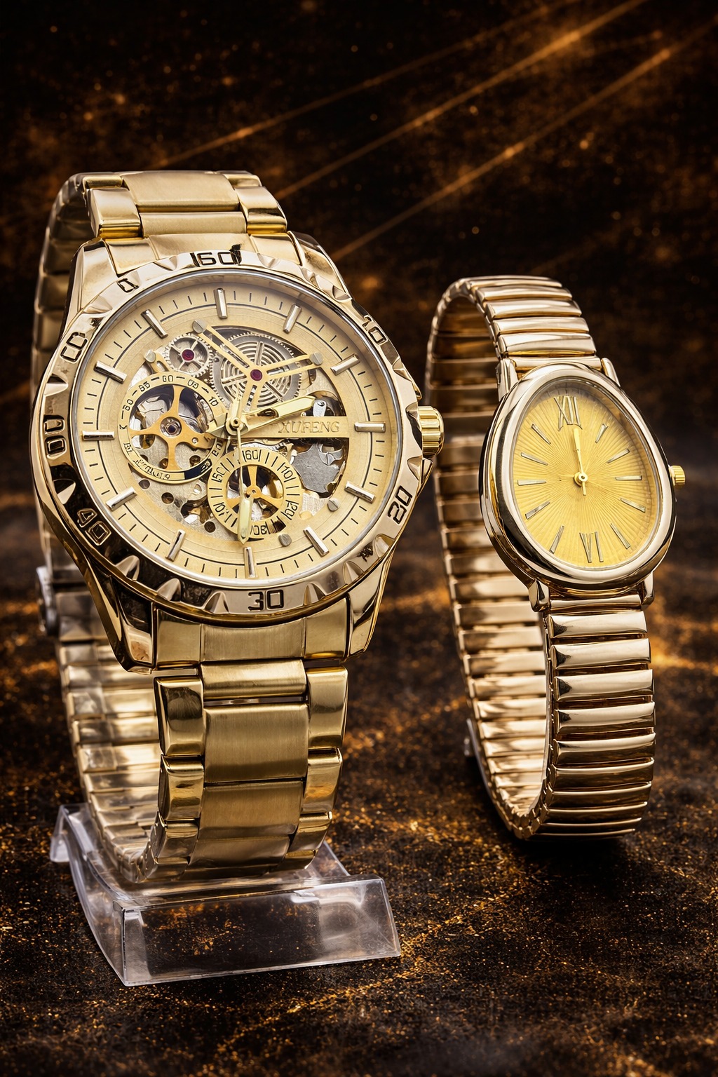 Um combo exclusivo que une força e sofisticação no masculino com delicadeza e elegância no feminino — perfeito para casais que gostam de se destacar juntos.
