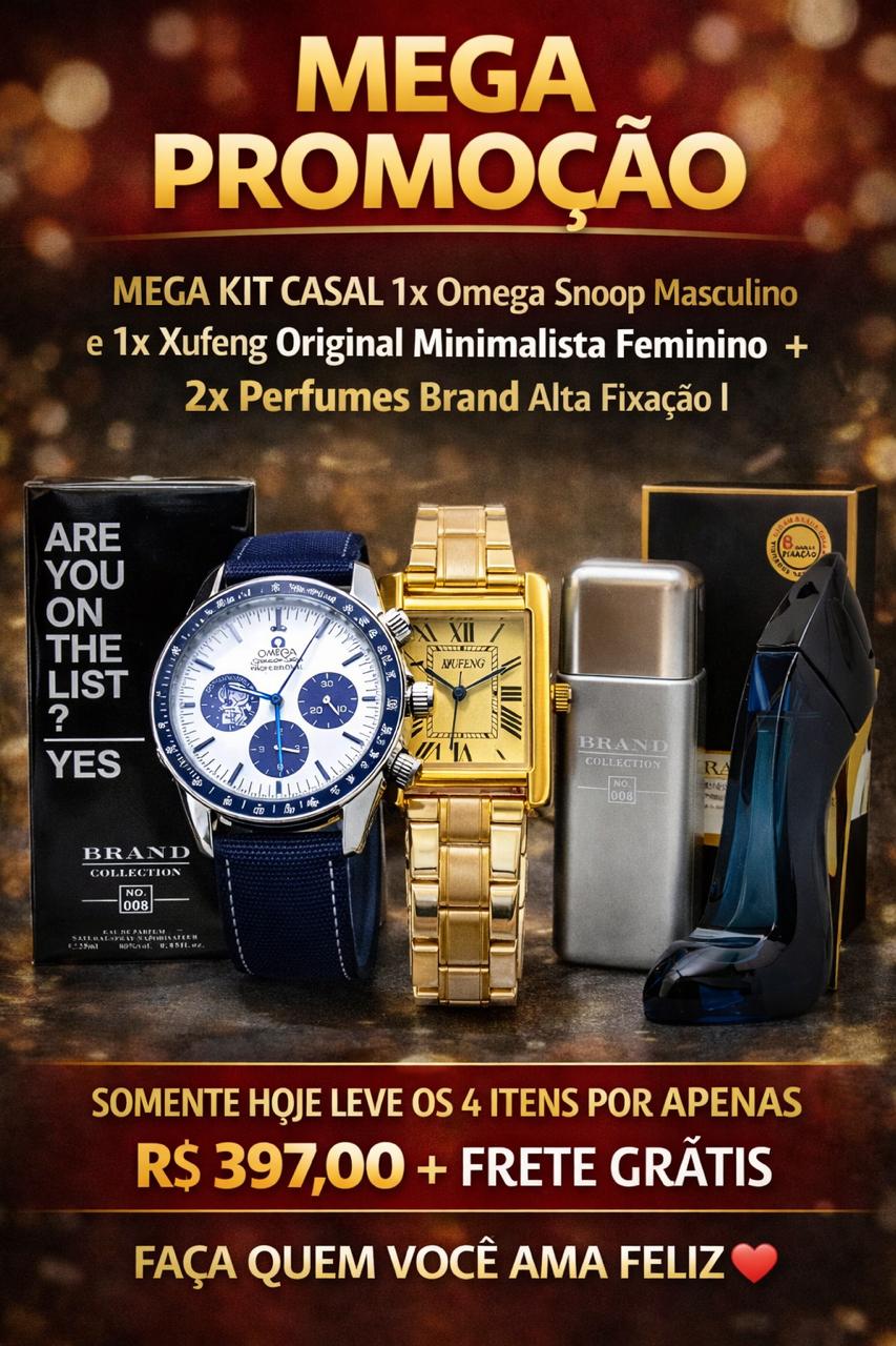 🎁 NOVIDADE ABSURDA MEGA KIT CASAL 1x Relógio Omeg Snoop Masculino, 1x Minimalista Original Todo Banhado + 2x Perfumes Brand + FRETE GRÁTIS