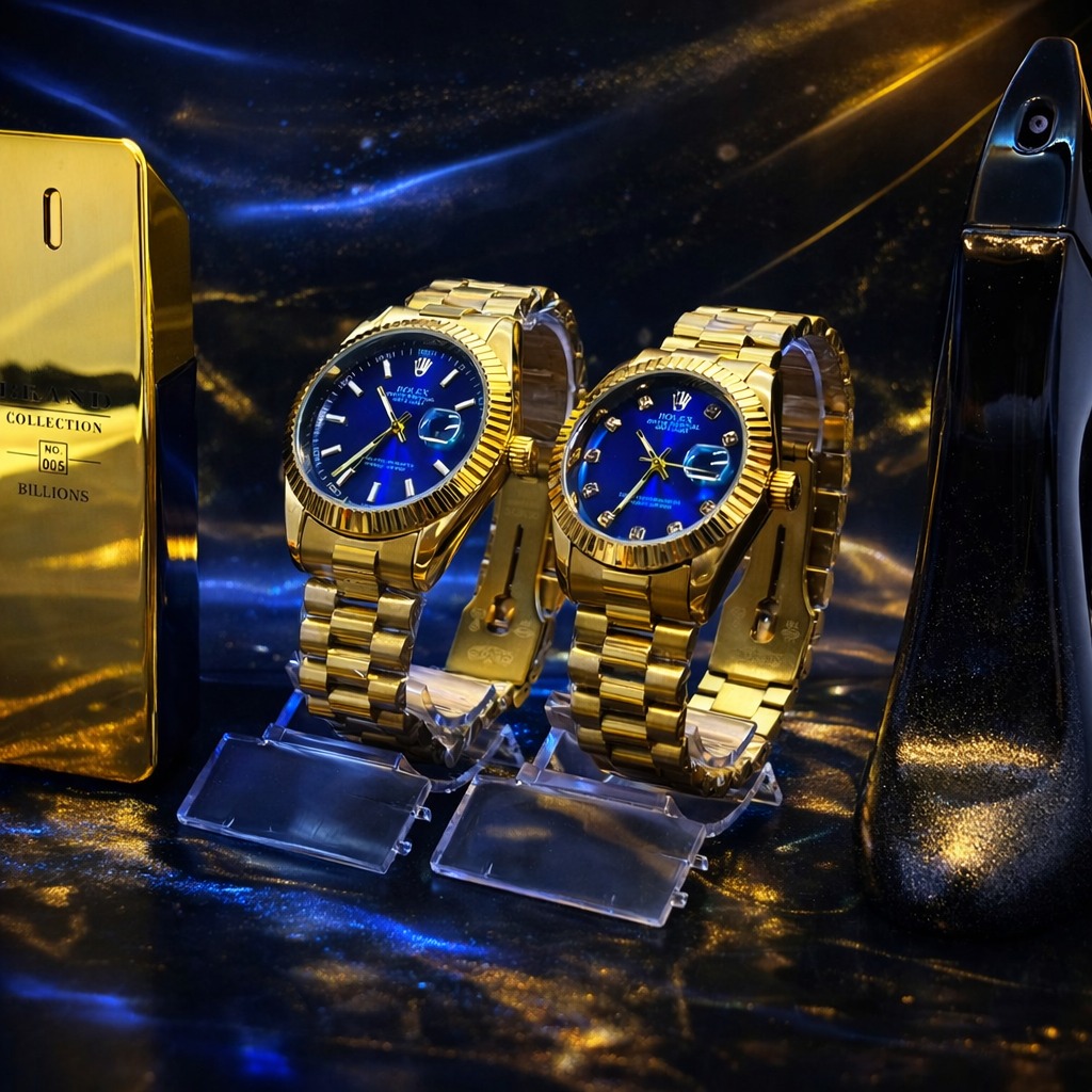 -60%🎁 MEGA KIT CASAL – Relógios + Perfumes com FRETE GRÁTIS