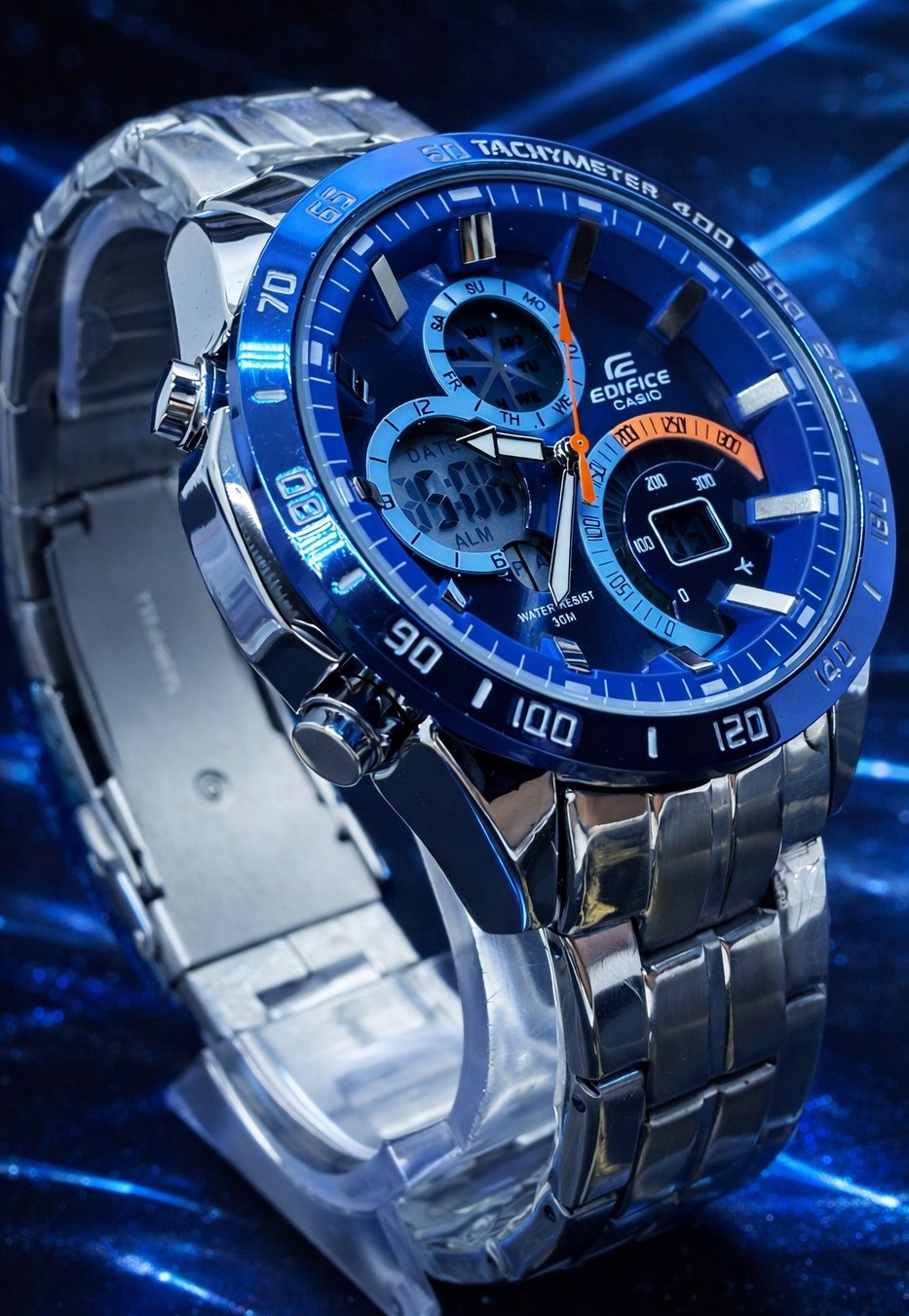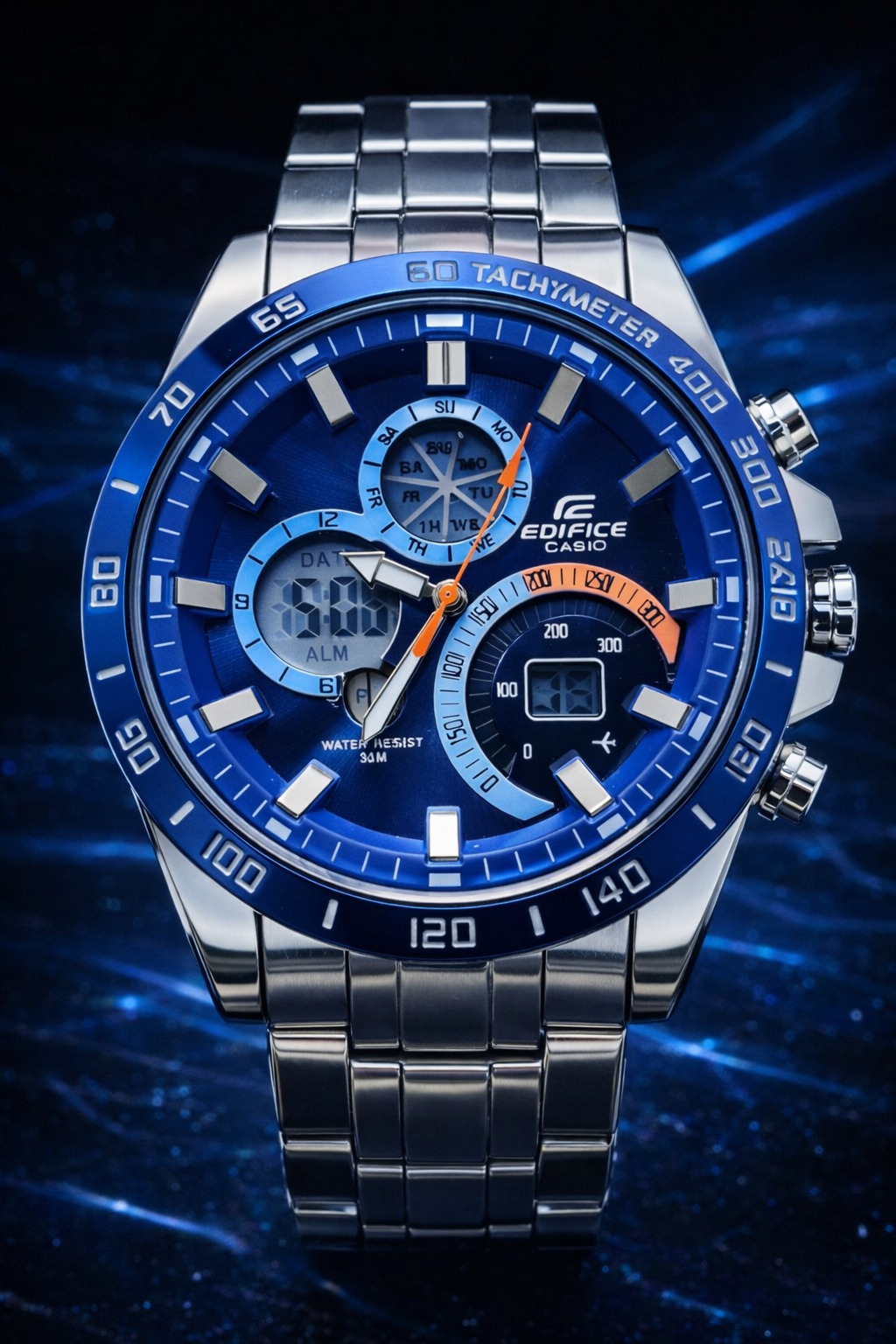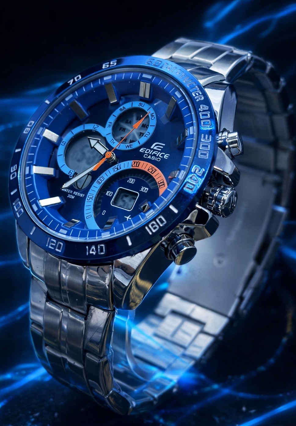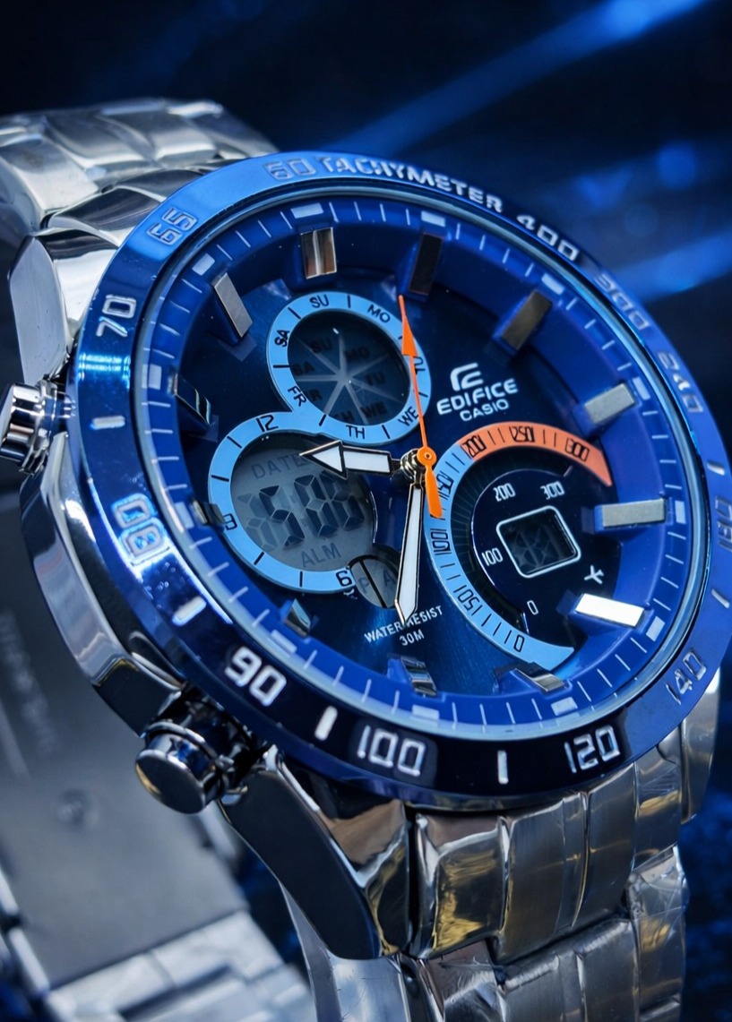 🎁 NOVIDADE EM PROMOÇÃO 2026 Relógio Edifice Funcional Digital e Analógico Mostrador Azul Todo em Aço Inoxidável Luxo e Destaque + FRETE GRÁTIS