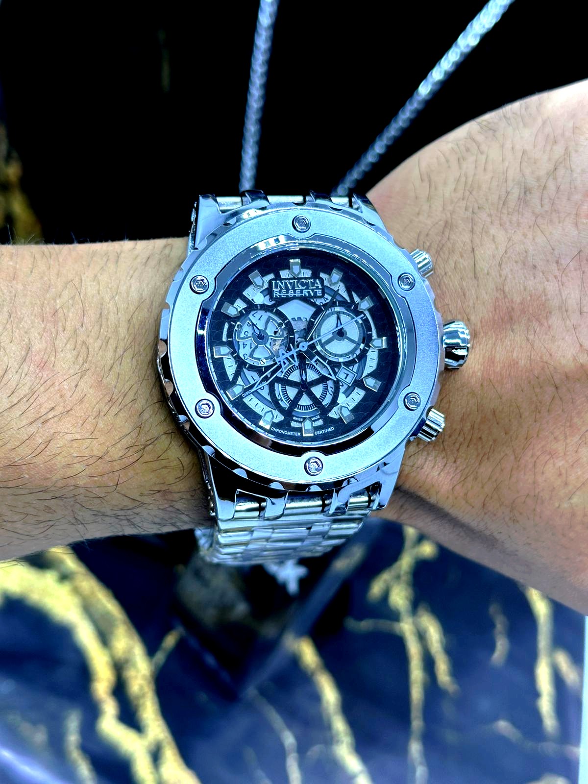 🎁 MEGA PROMOÇÃO Invicta Reserva Aço Inox Cor Prata Mostrador Preto PROVA D’ÁGUA + FRETE GRÁTIS